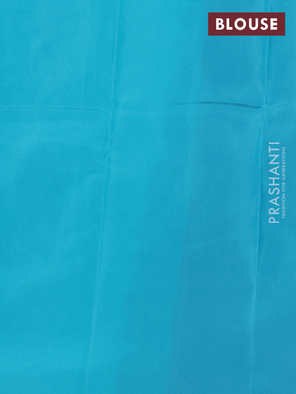 Kanchipuram silk saree pink and teal blue with zari woven buttas in borderless style