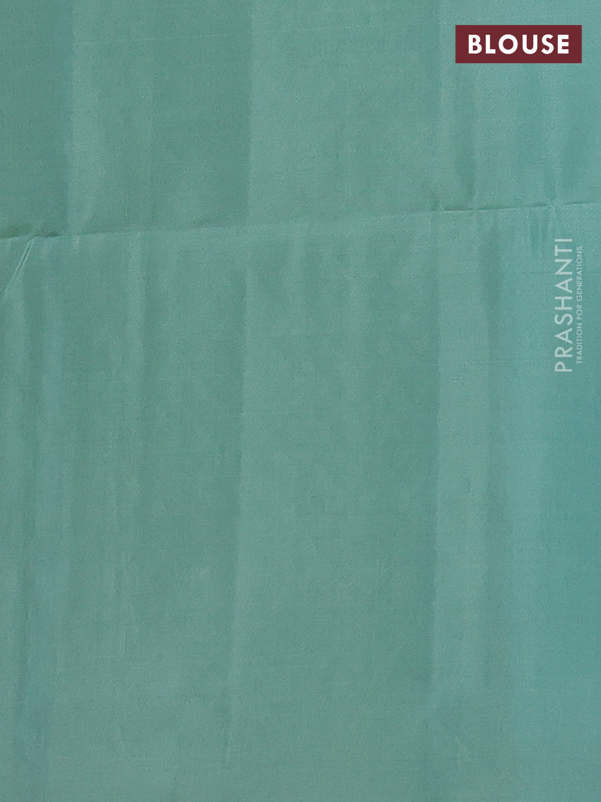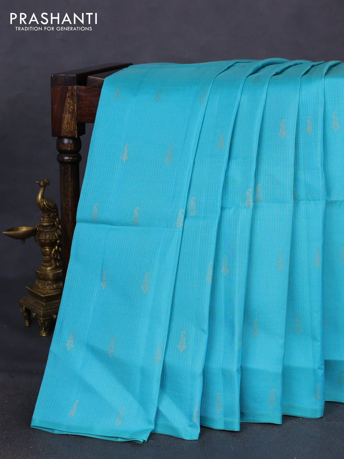 Kanchipuram soft silk saree teal blue and pastel green with allover zari weaves & buttas in borderless style