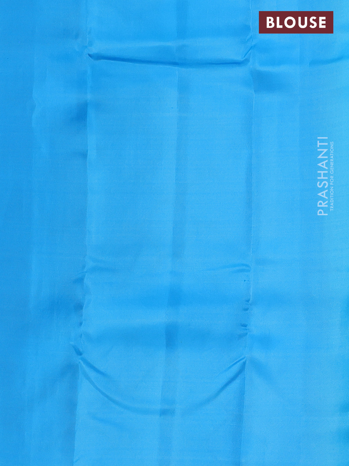 Kanchipuram silk saree teal green shade and blue with copper zari woven buttas and copper zari woven butta border
