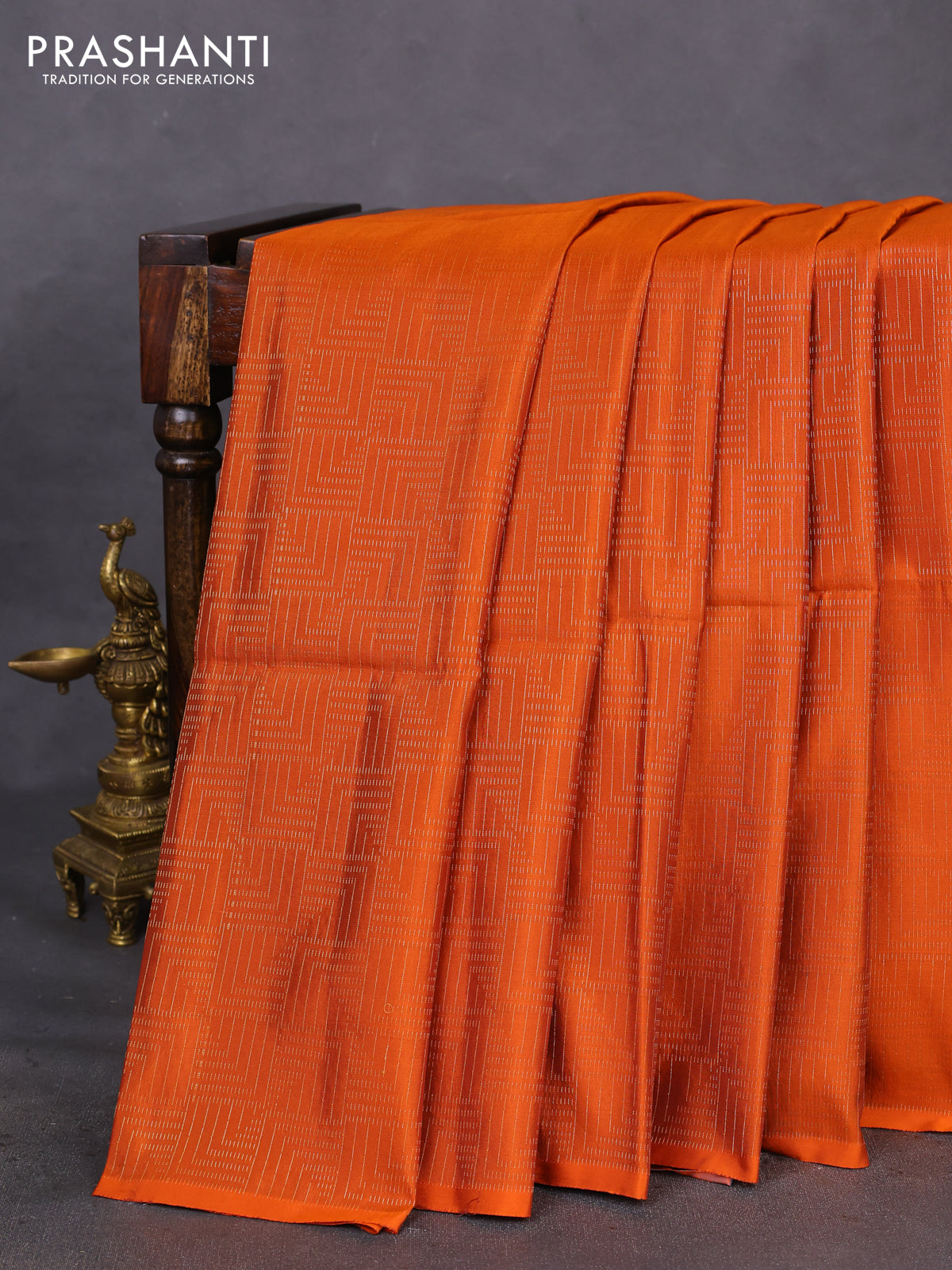 Kanchipuram soft silk saree orange and cs blue with allover zari weaves in borderless style
