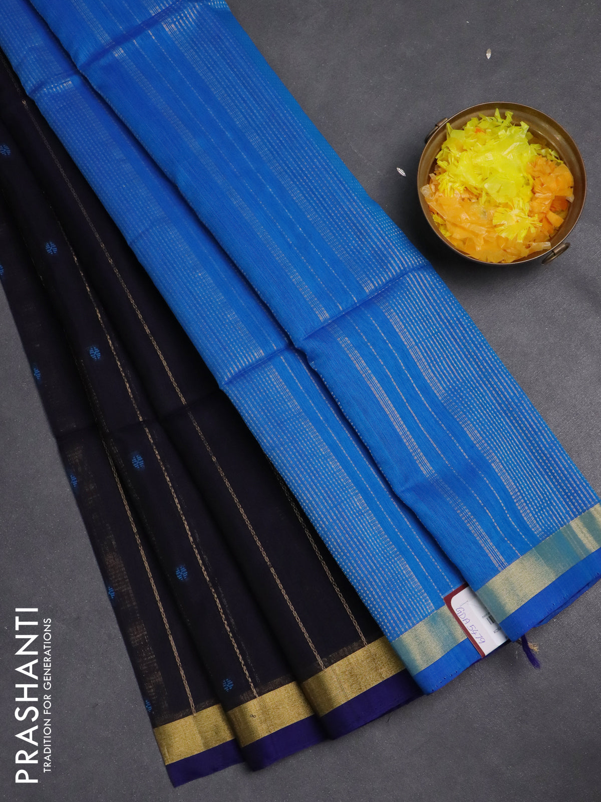 Kora silk cotton saree deep jamun and cs blue with allover zari weaves & thread buttas and zari woven border