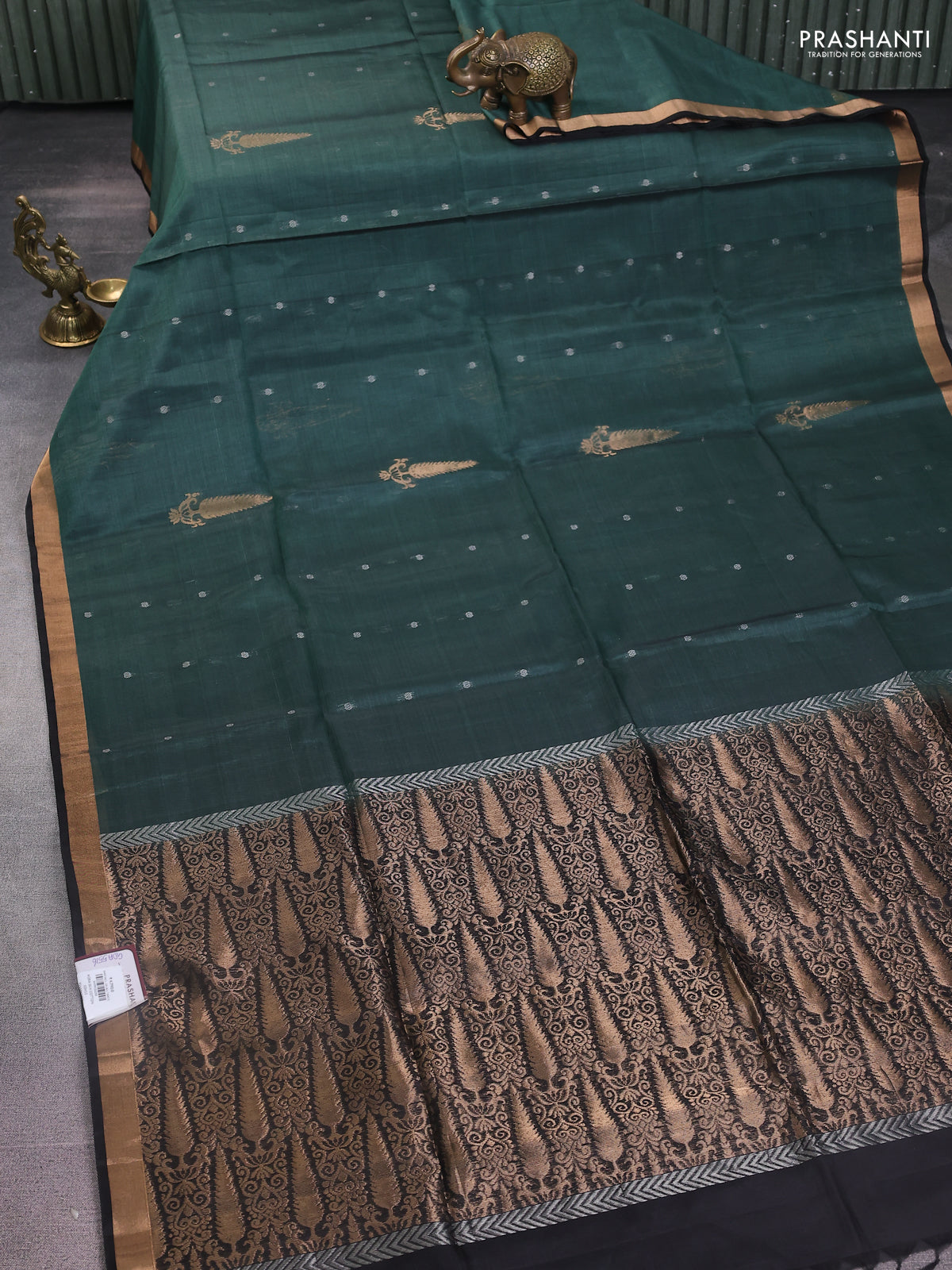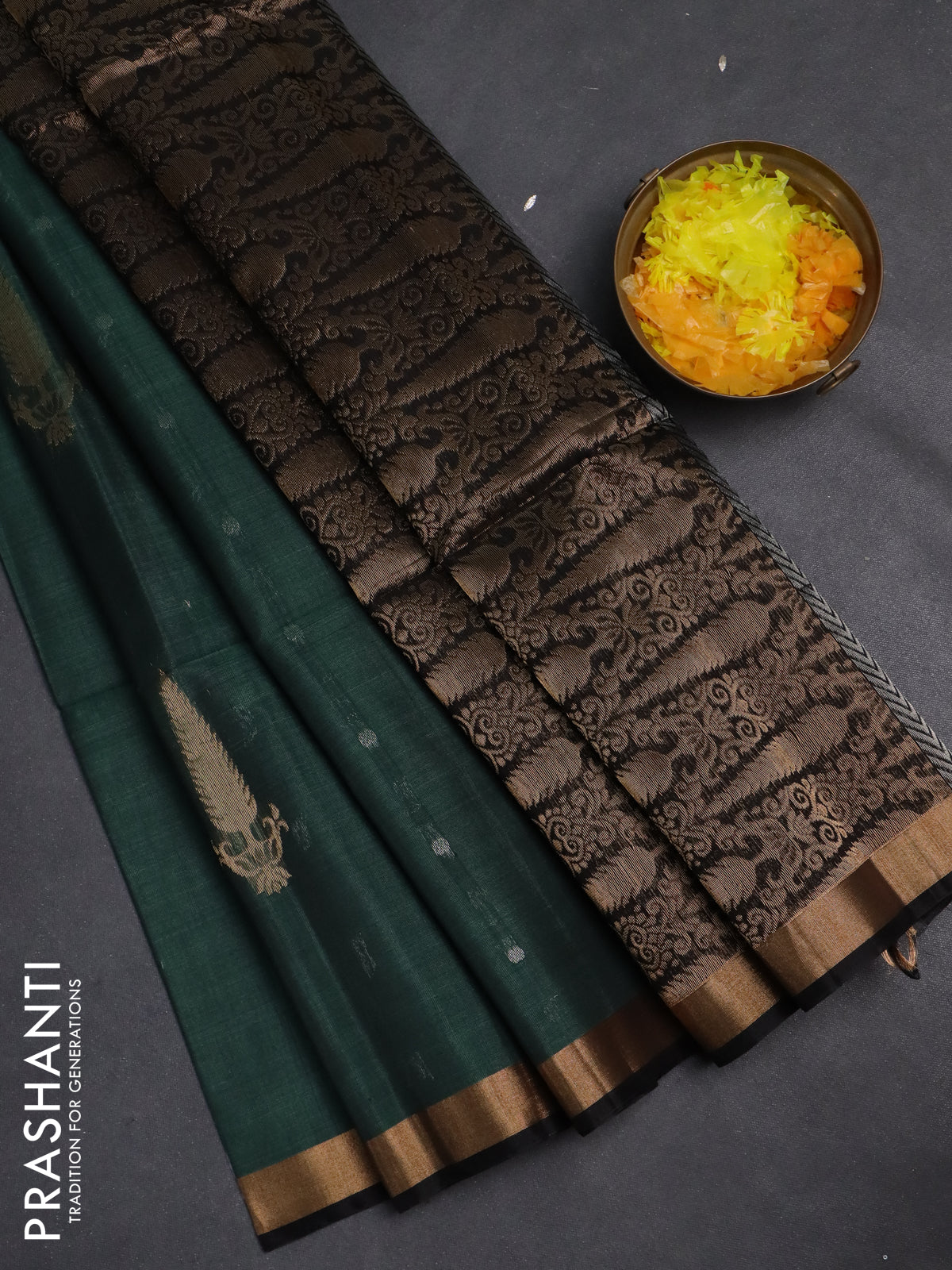 Kora silk cotton saree green shade and black with zari woven buttas and zari woven buttas border