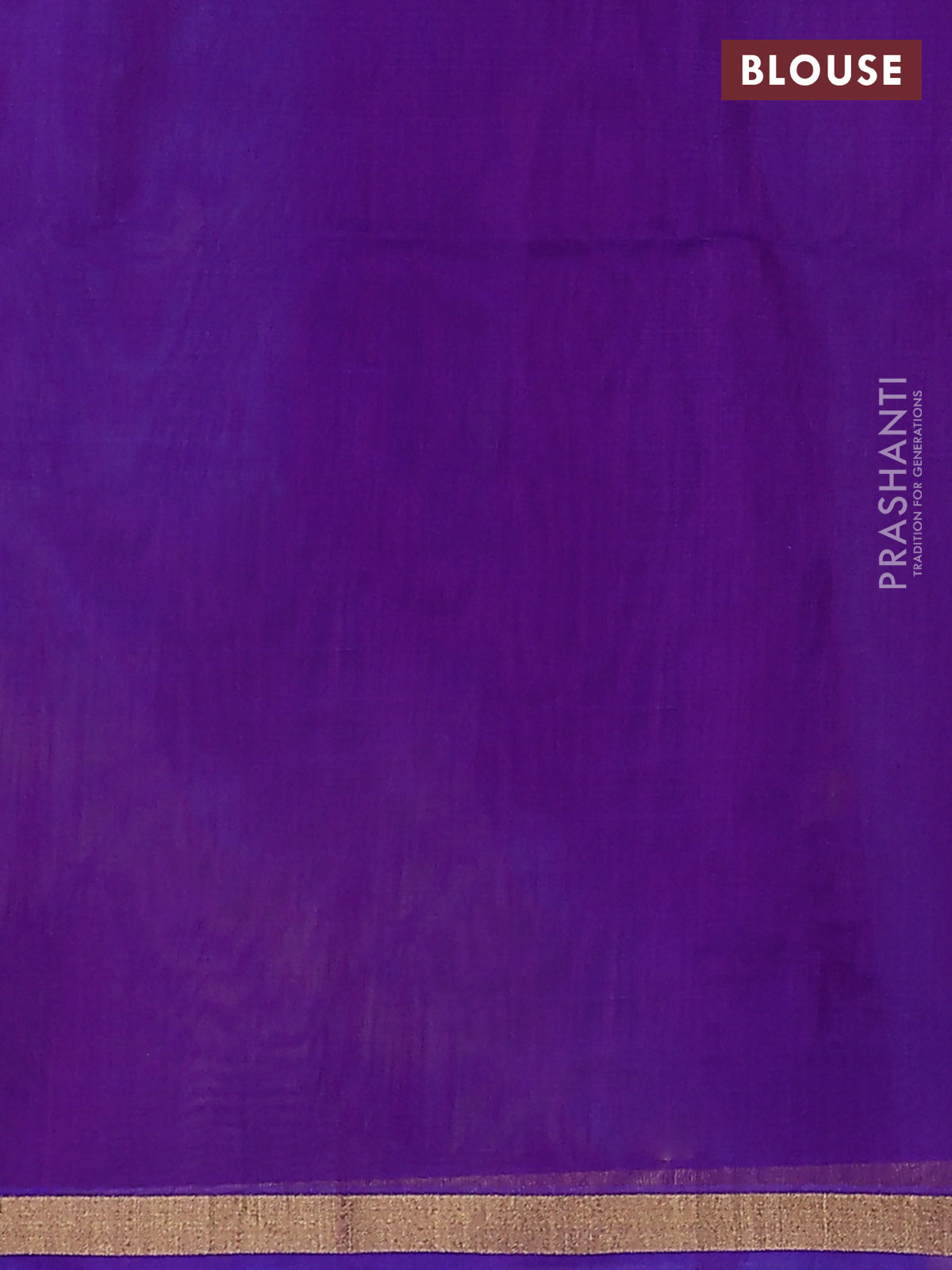 Kora silk cotton saree peacock blue and purple with zari woven buttas and zari woven border