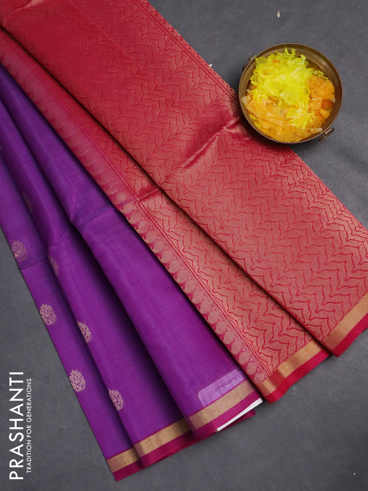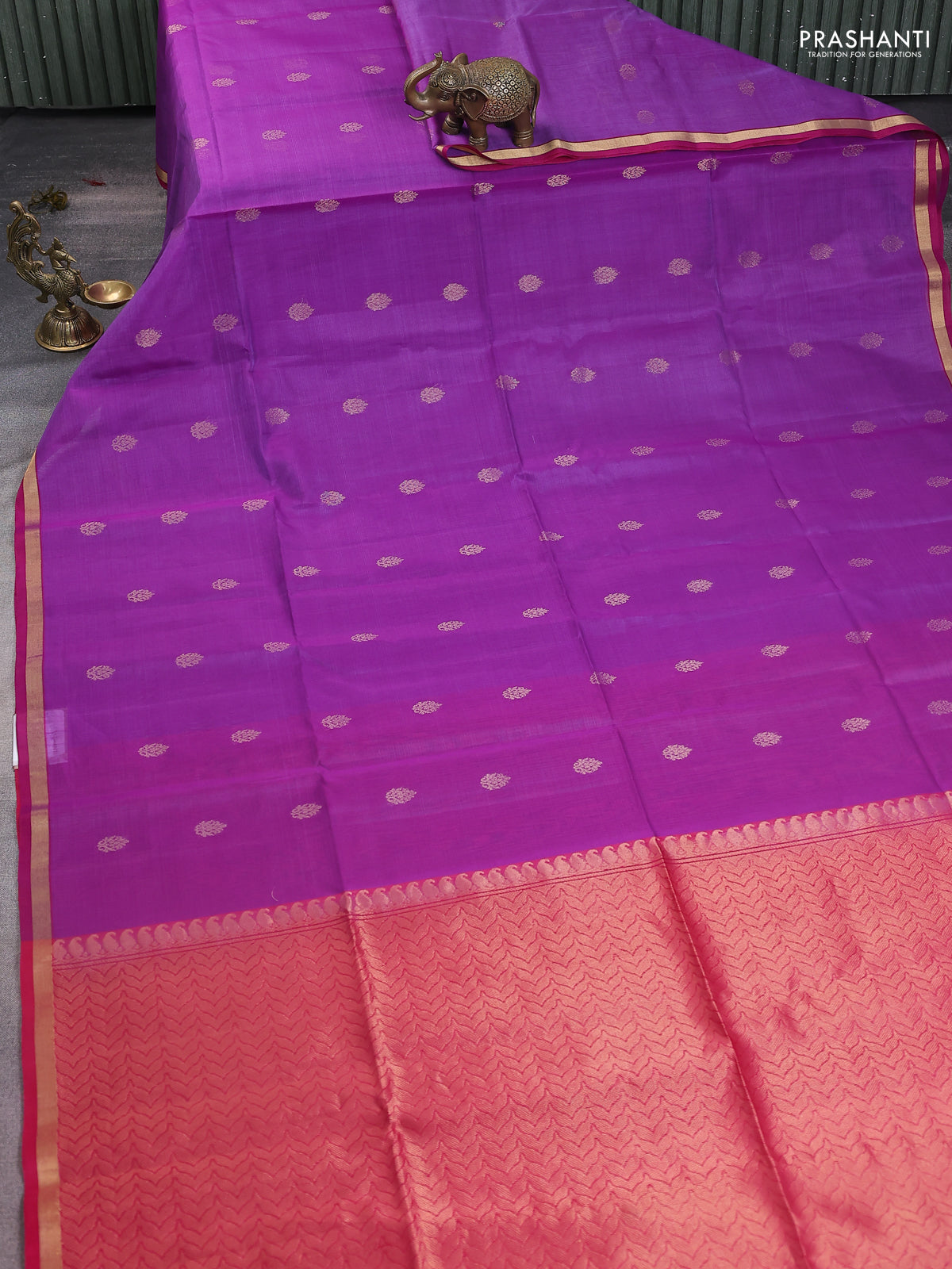 Kora silk cotton saree purple and pink with zari woven buttas and zari woven border