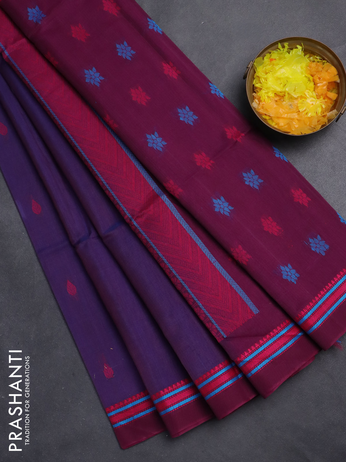 Kora silk cotton saree purple with thread woven buttas and thread woven simple border
