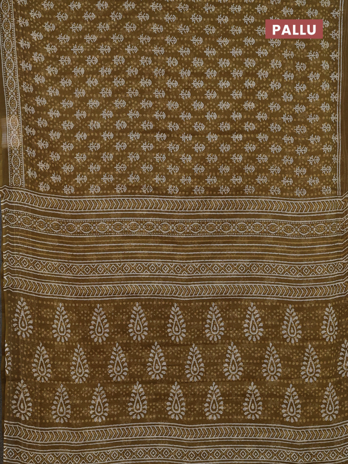 Kota doria saree mehendi green with allover dabu prints and printed border