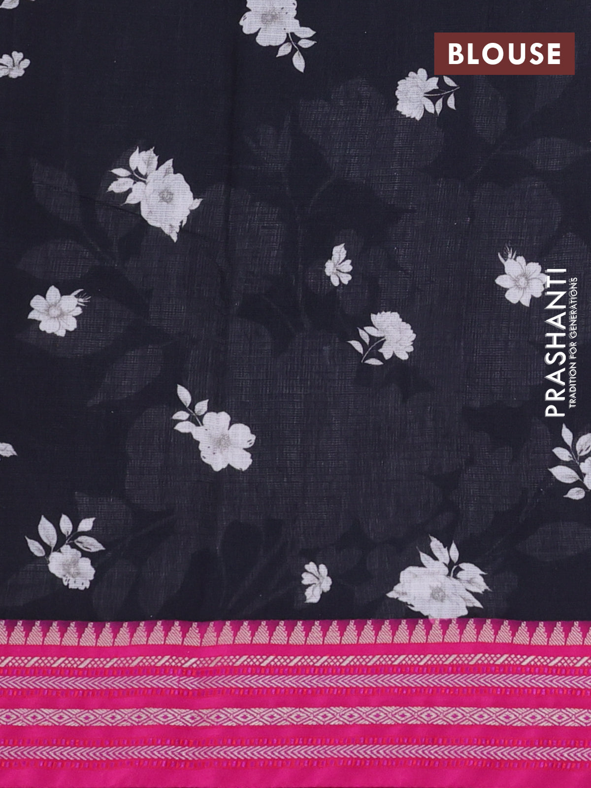 Kota silk cotton saree black and pink with allover floral digital prints and woven border