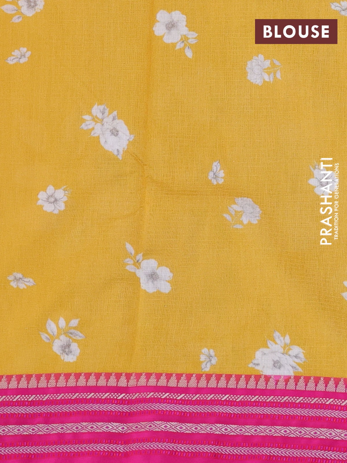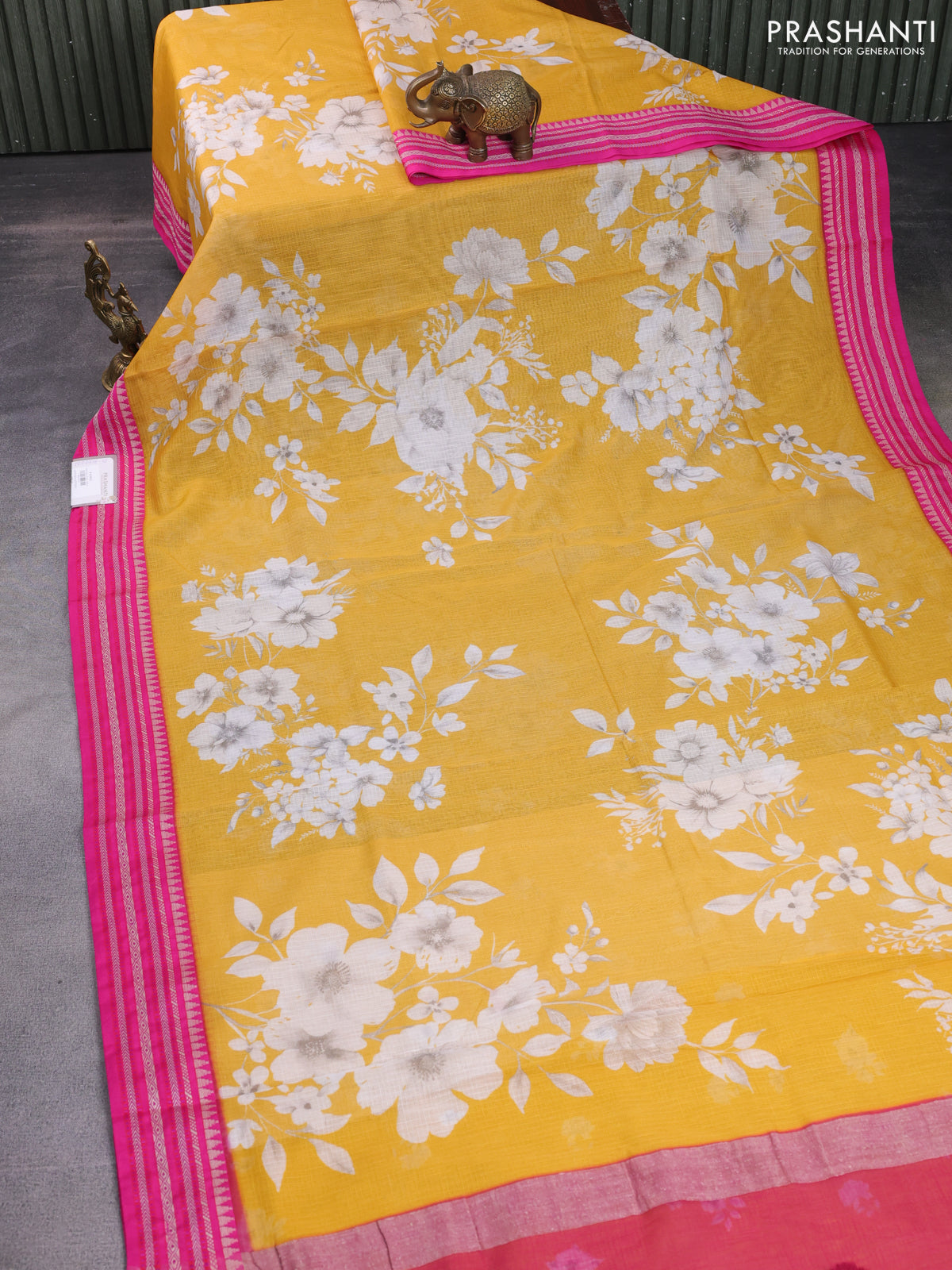 Kota silk cotton saree yellow and pink with allover floral digital prints and woven border