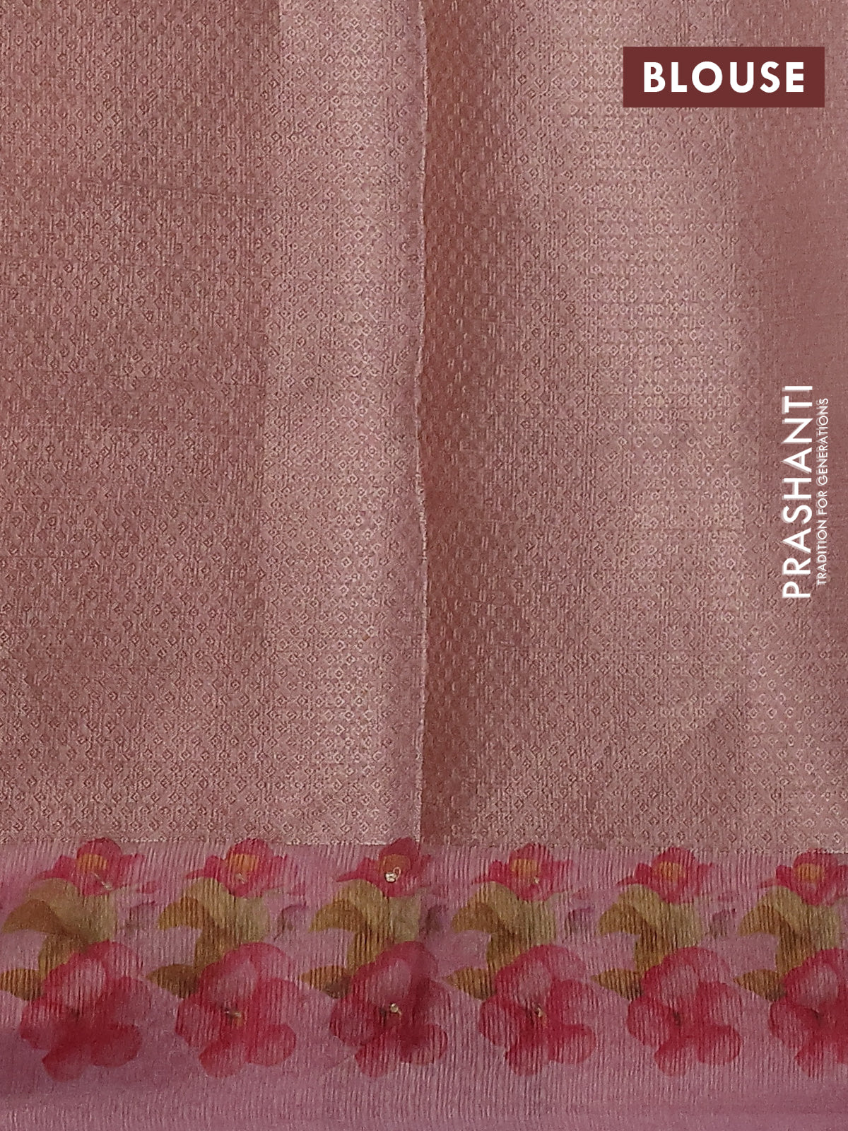 Kota tissue saree light pink with floral prints & pita work and zardosi work butta border