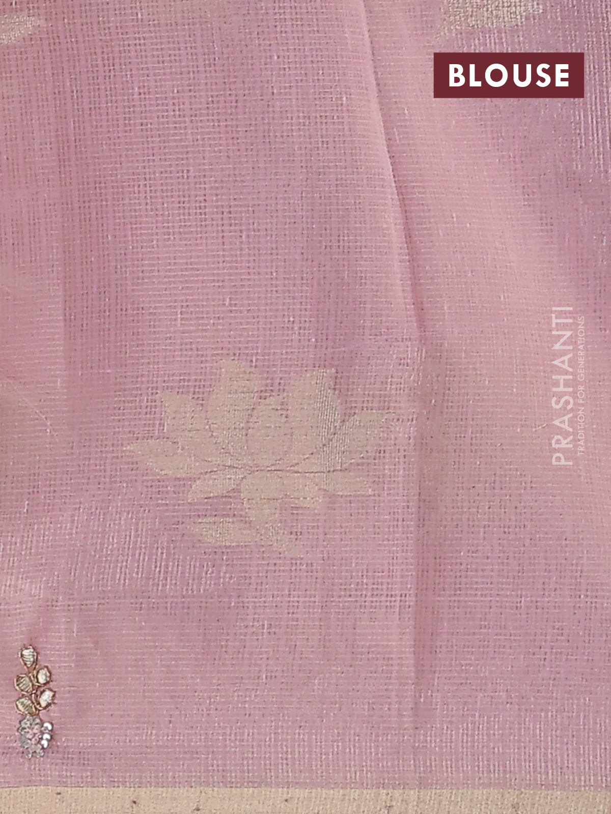 Kota tissue saree light pink with zari woven floral buttas and embroidery butta border