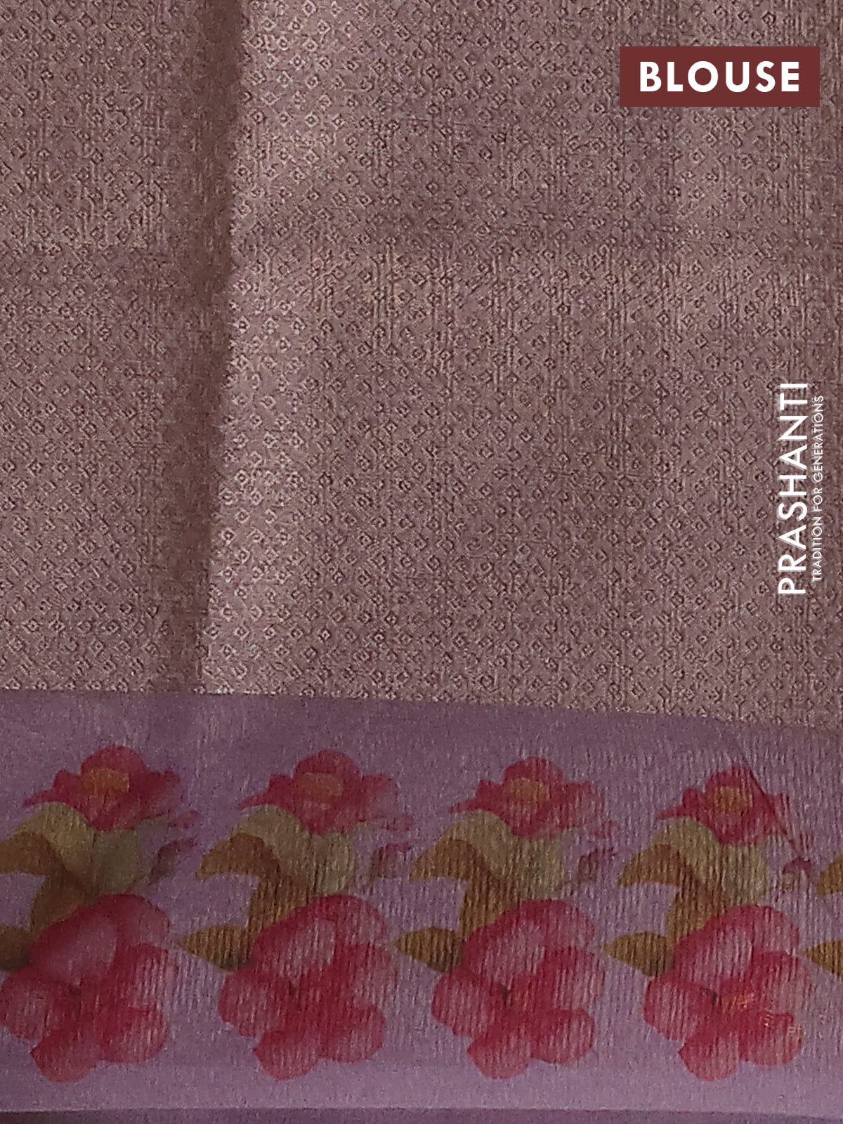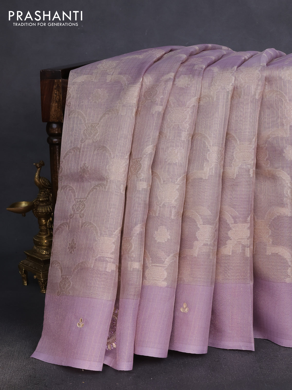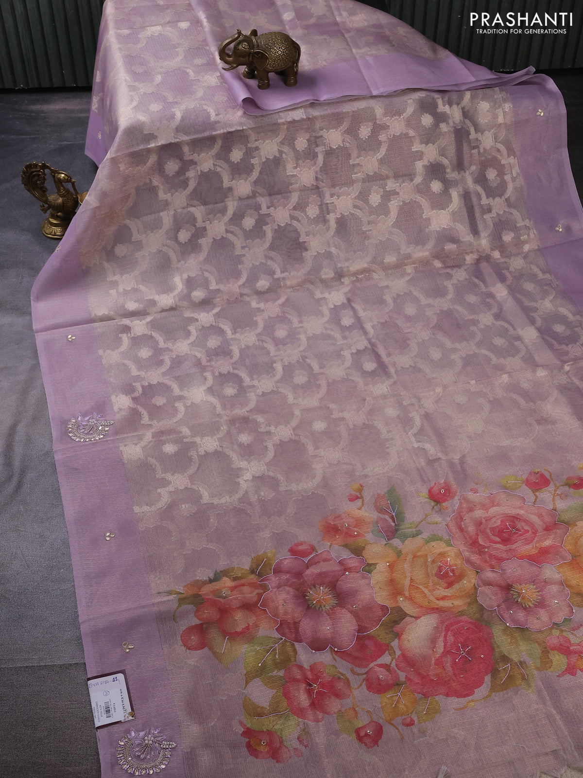 Kota tissue saree pastel lavender with floral prints & pita work and zardosi work butta border