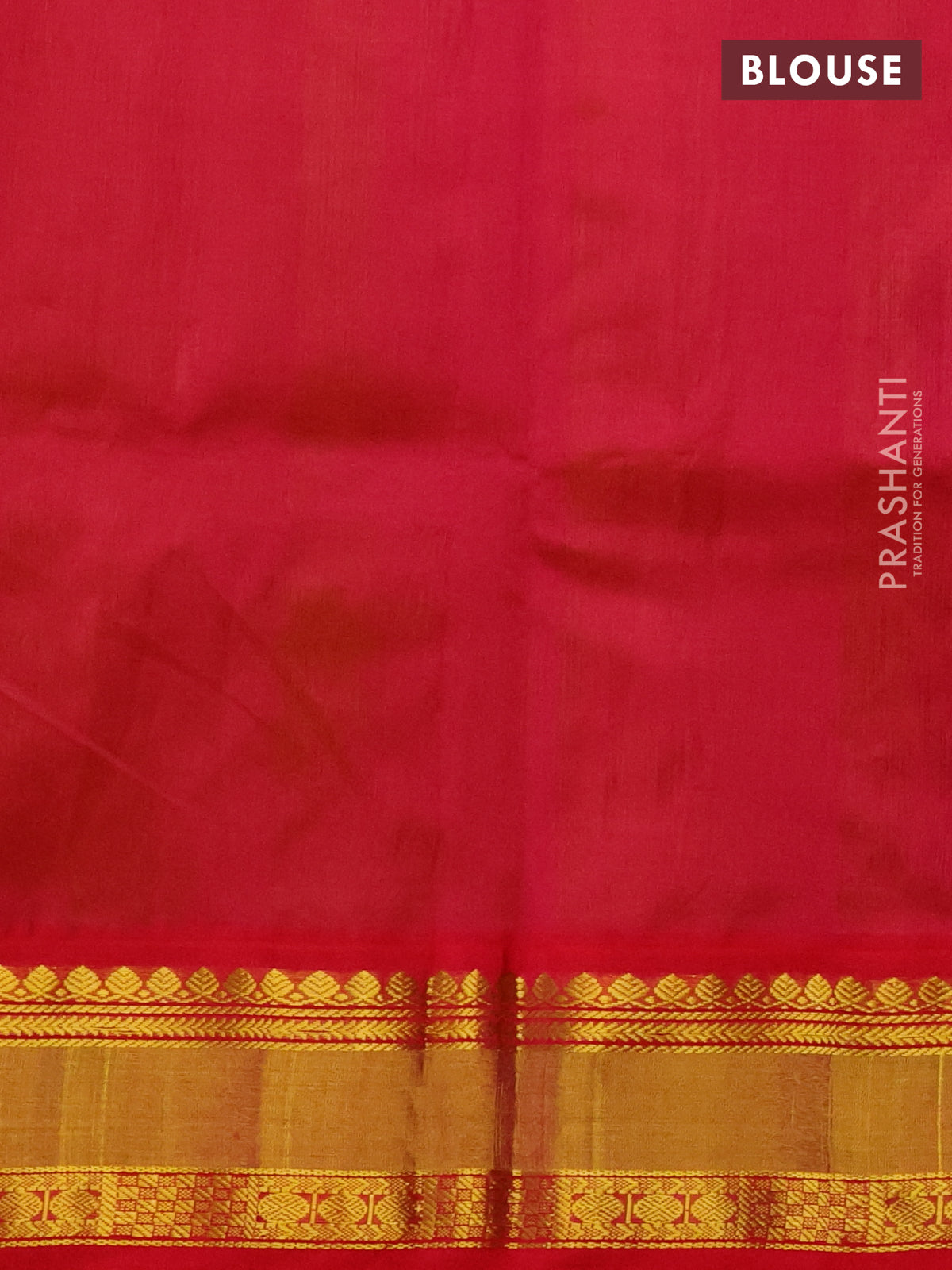 Kuppadam silk cotton saree dual shade of yellowish green and pink with rudhraksha zari woven buttas and zari woven border