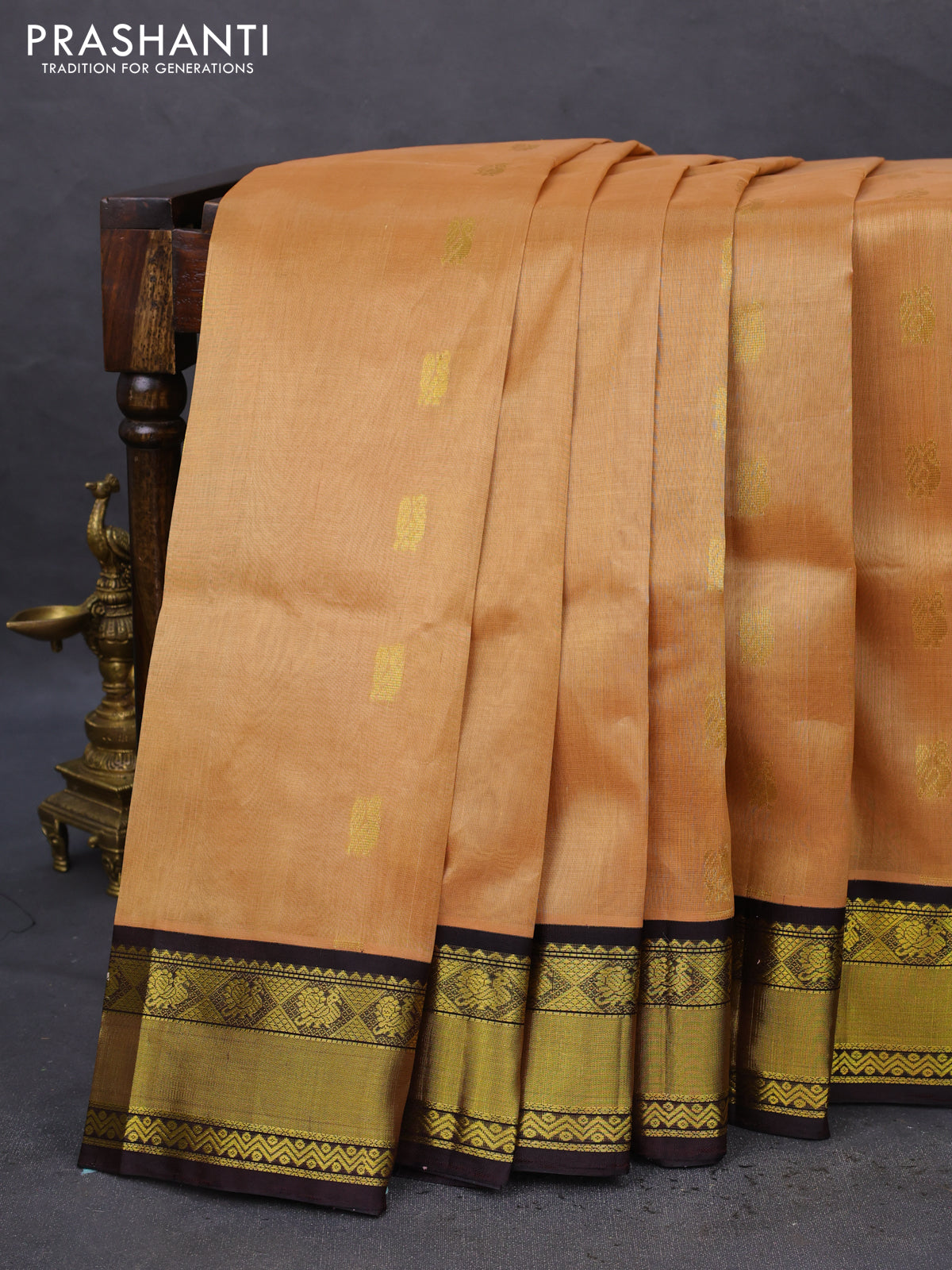 Kuppadam silk cotton saree sandal and coffee brown with annam zari woven buttas and zari woven border