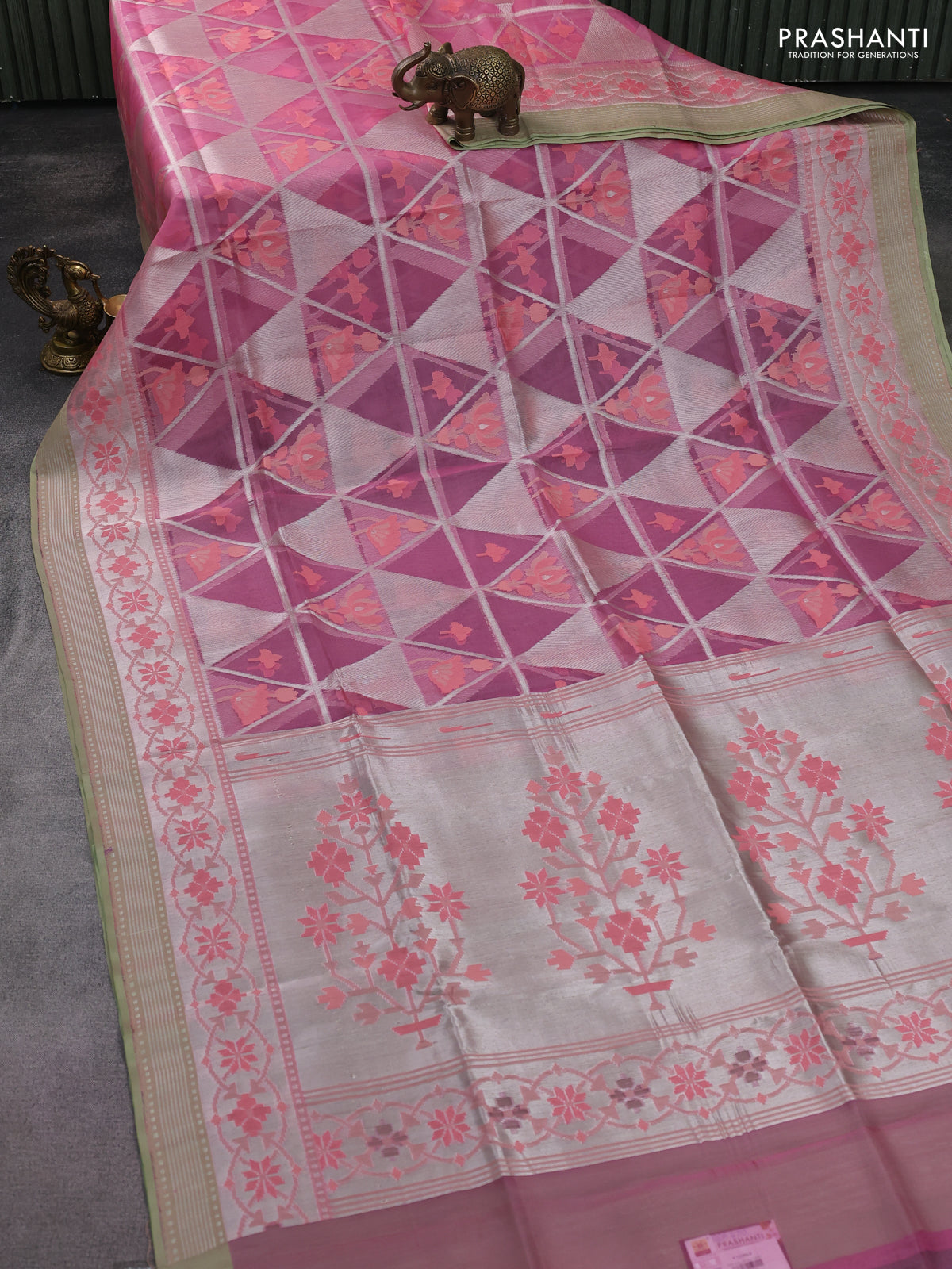 light pink and pastel green Banarasi kora jamdhani silk saree