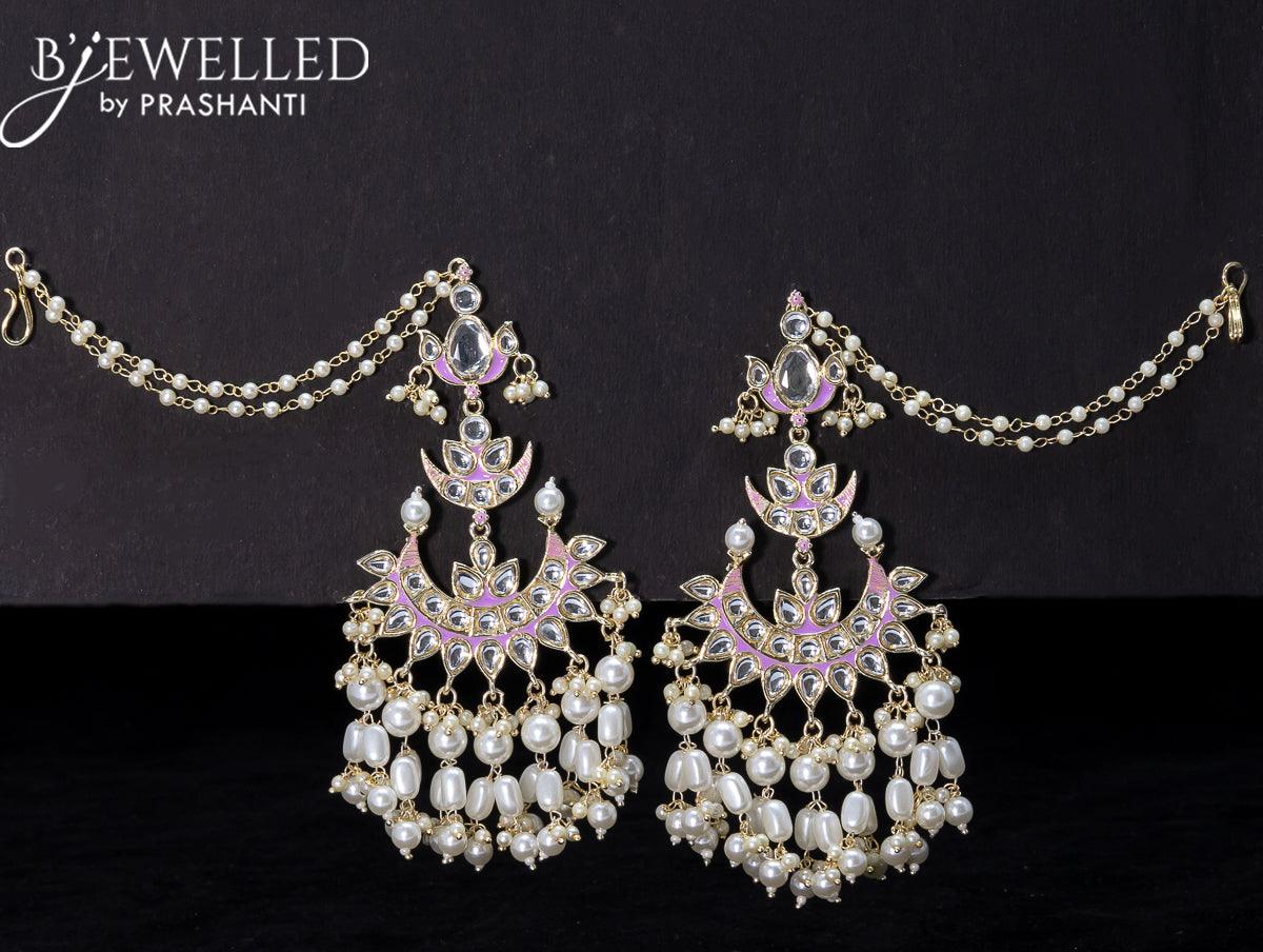 Light weight chandbali lavender minakari earrings with pearl maatal