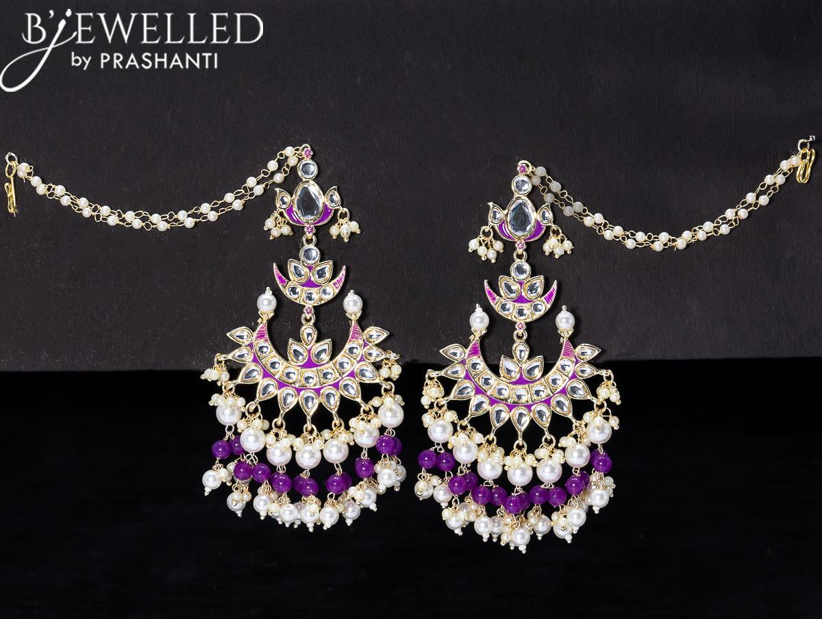 Light weight chandbali violet minakari earrings with pearl maatal