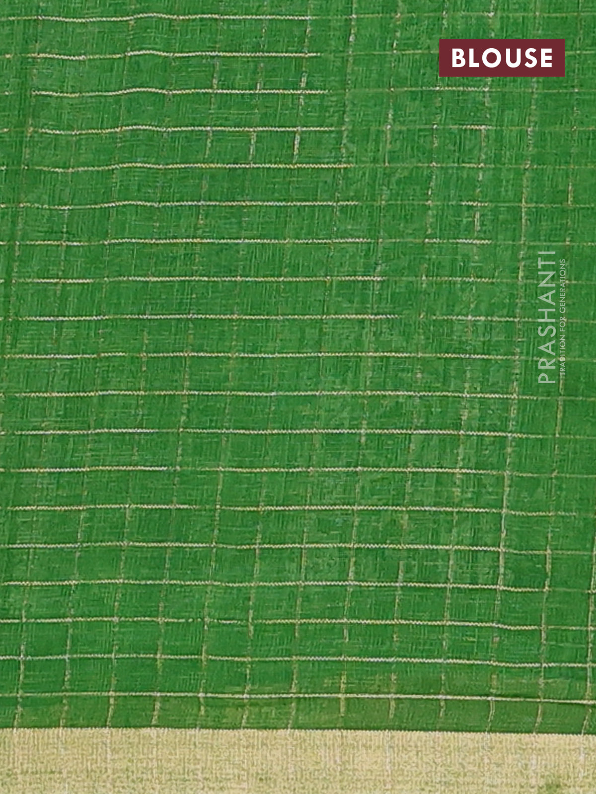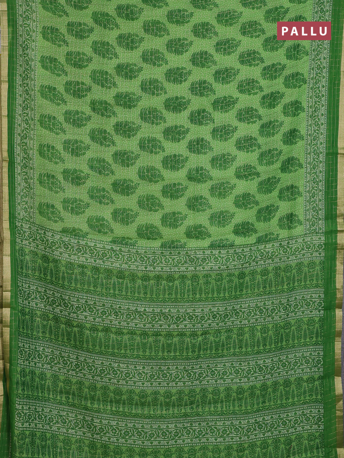 Linen cotton saree green with allover butta prints & zari checks and zari woven border