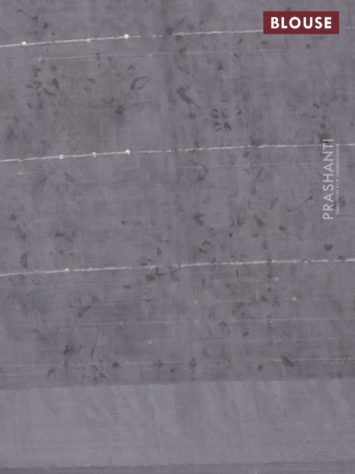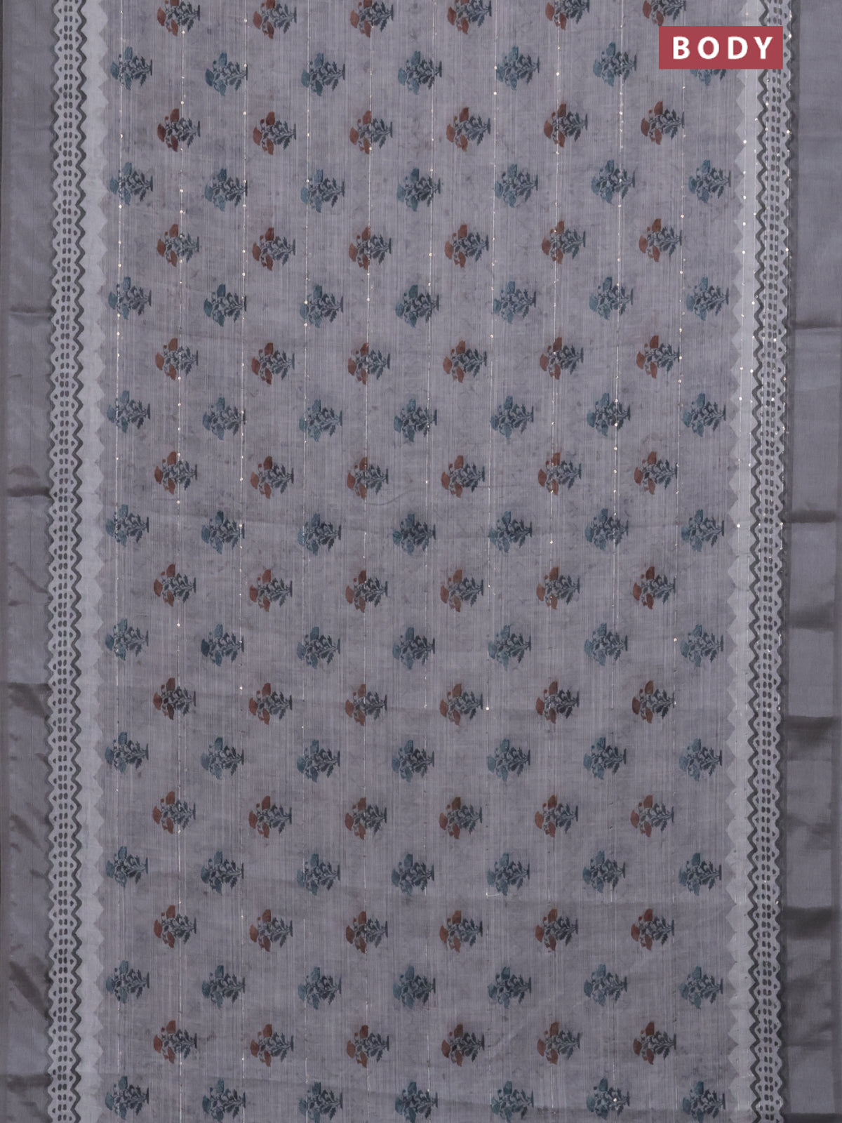 Linen cotton saree grey with floral butta prints & sequin work and silver zari woven border