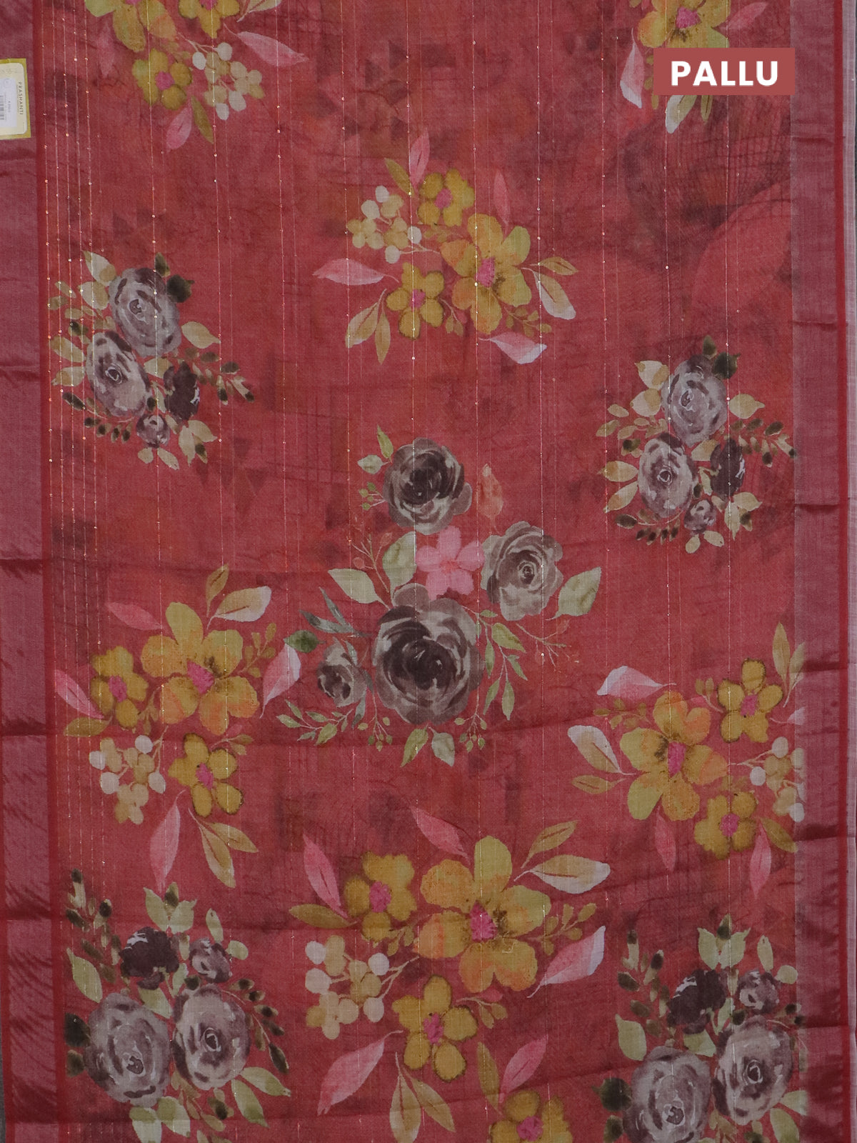 Linen cotton saree maroon shade with allover floral prints & sequin work and silver zari woven border