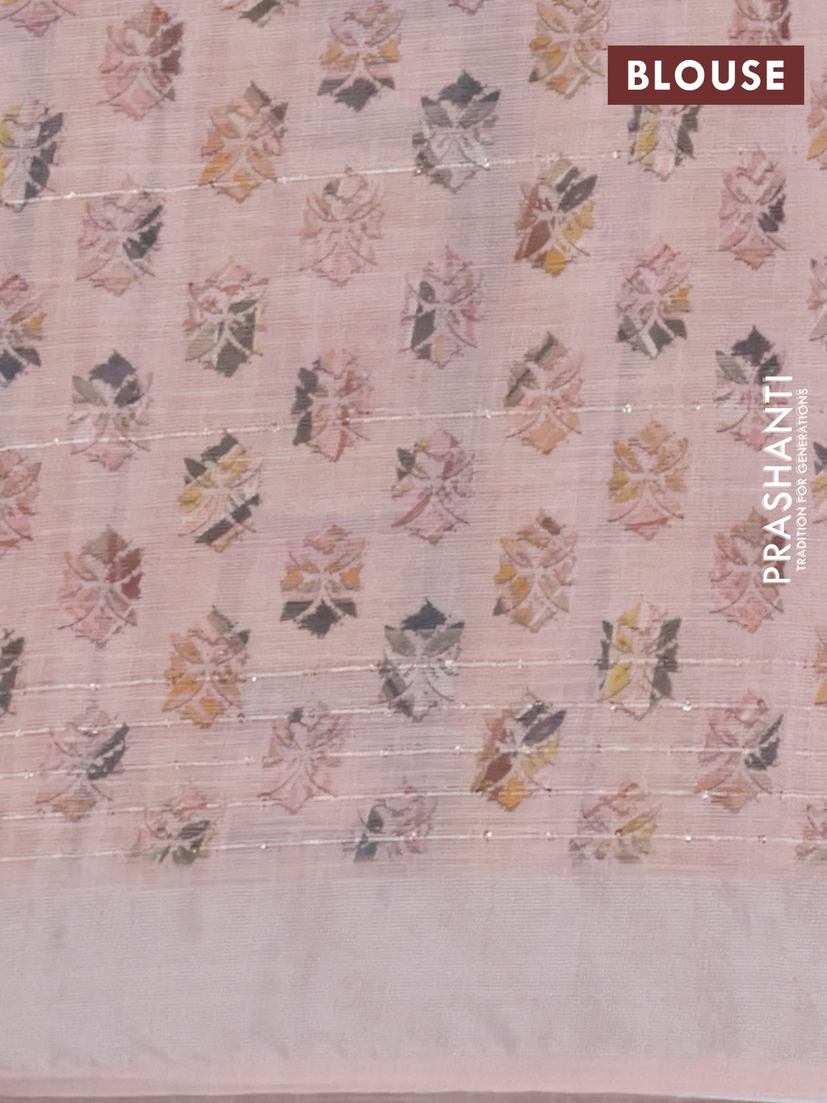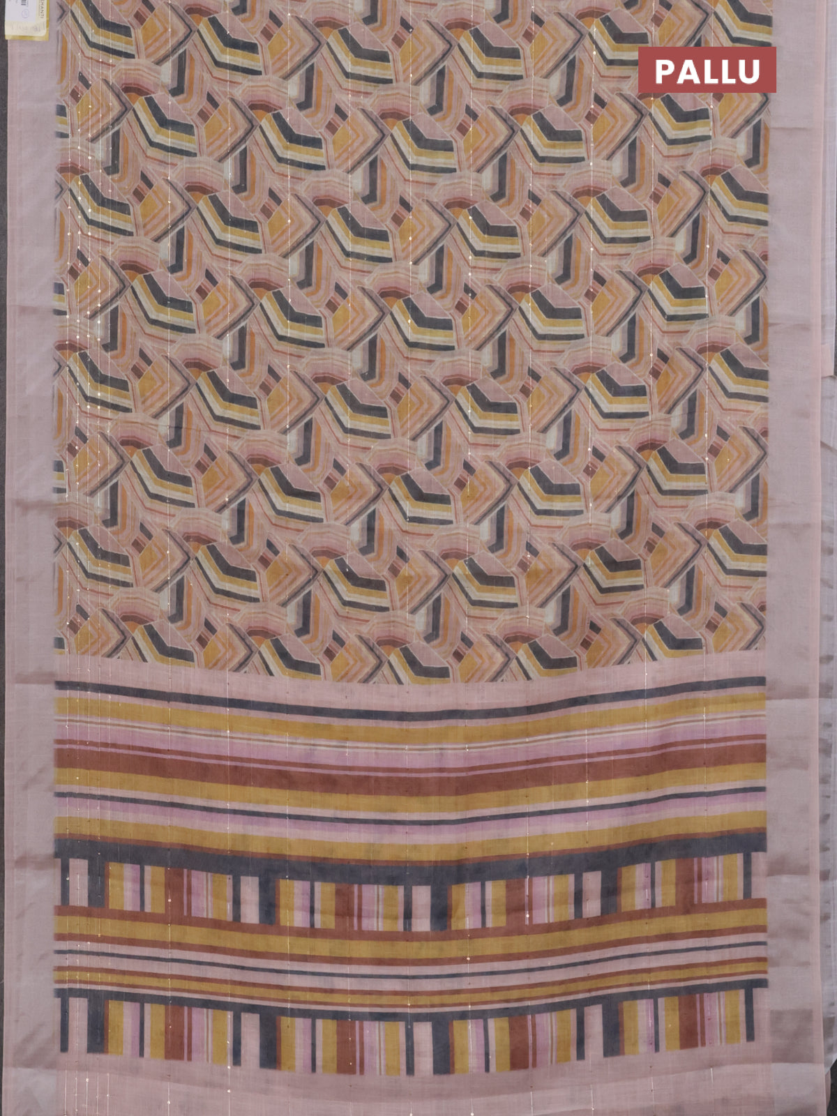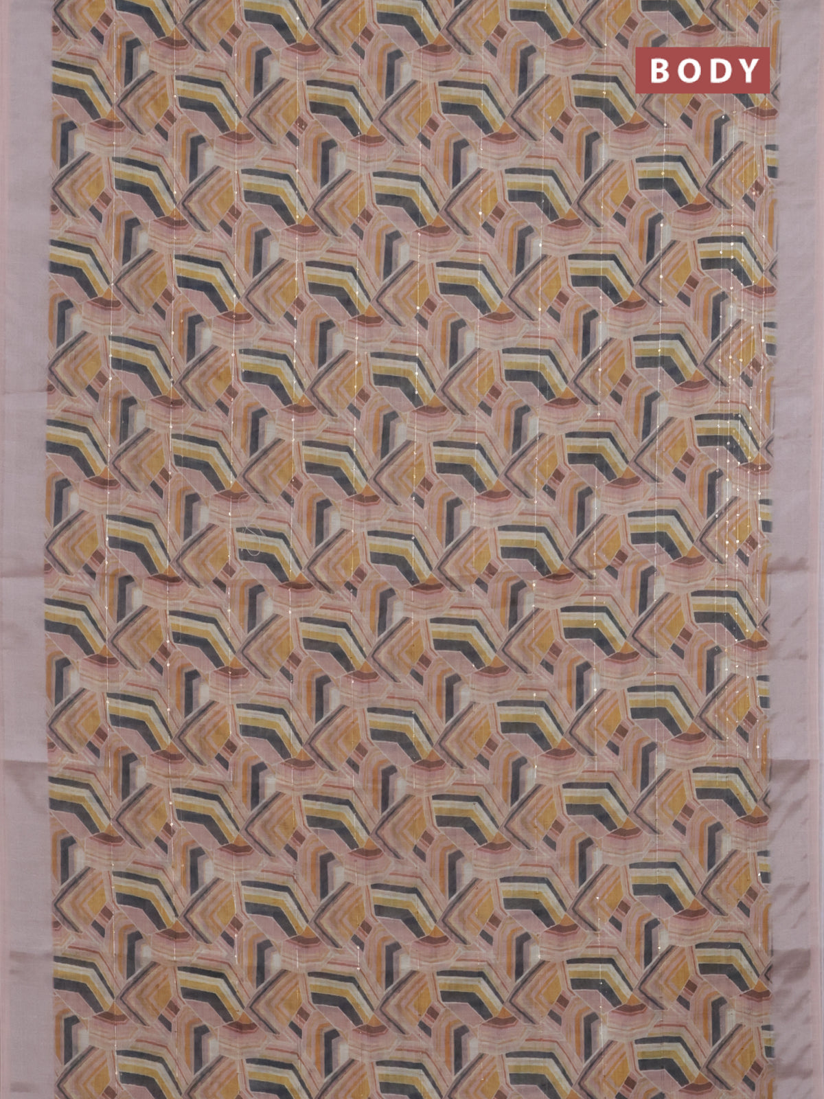 Linen cotton saree multi colour and peach shade with allover geometric prints & sequin work and silver zari woven border