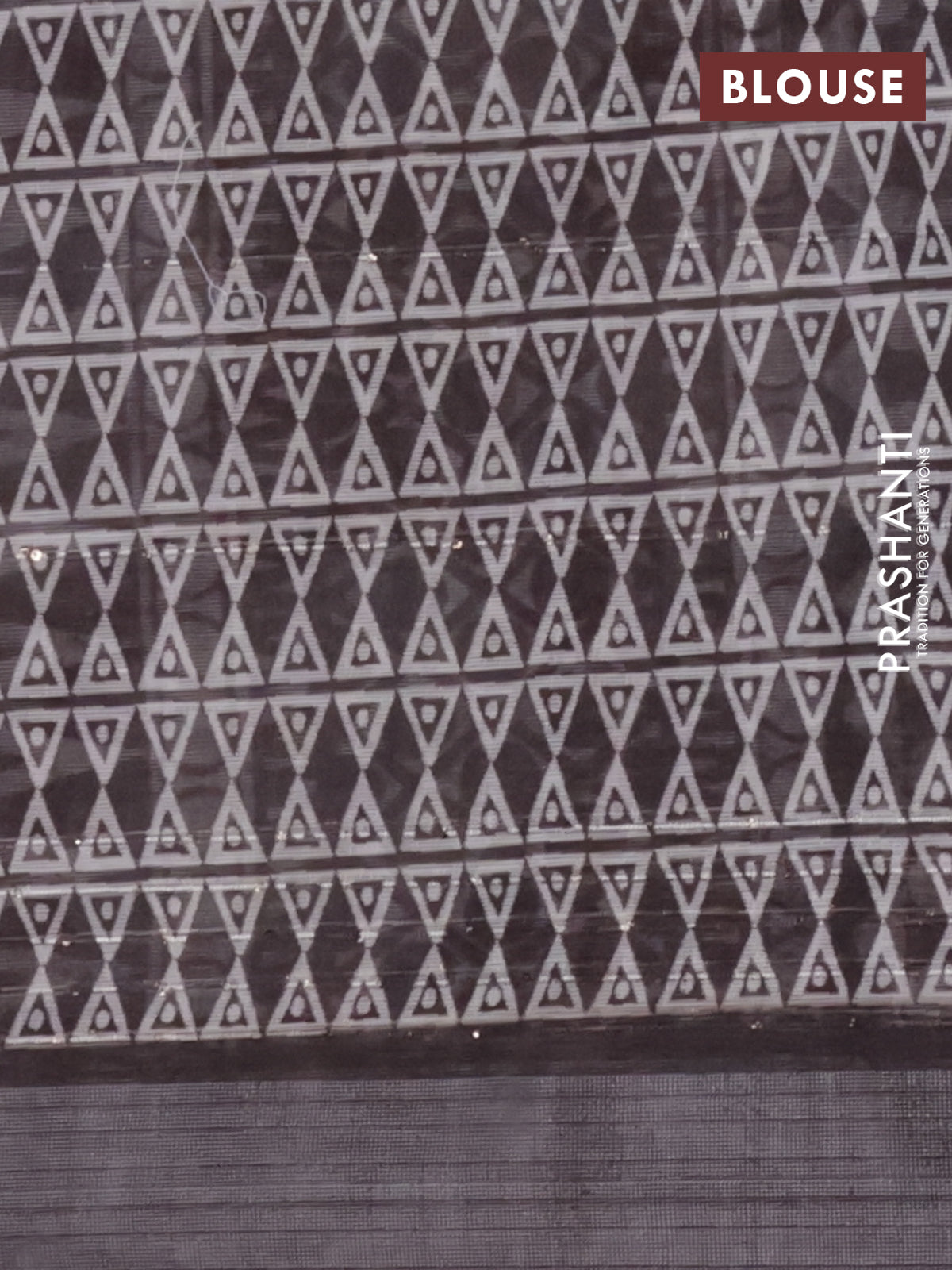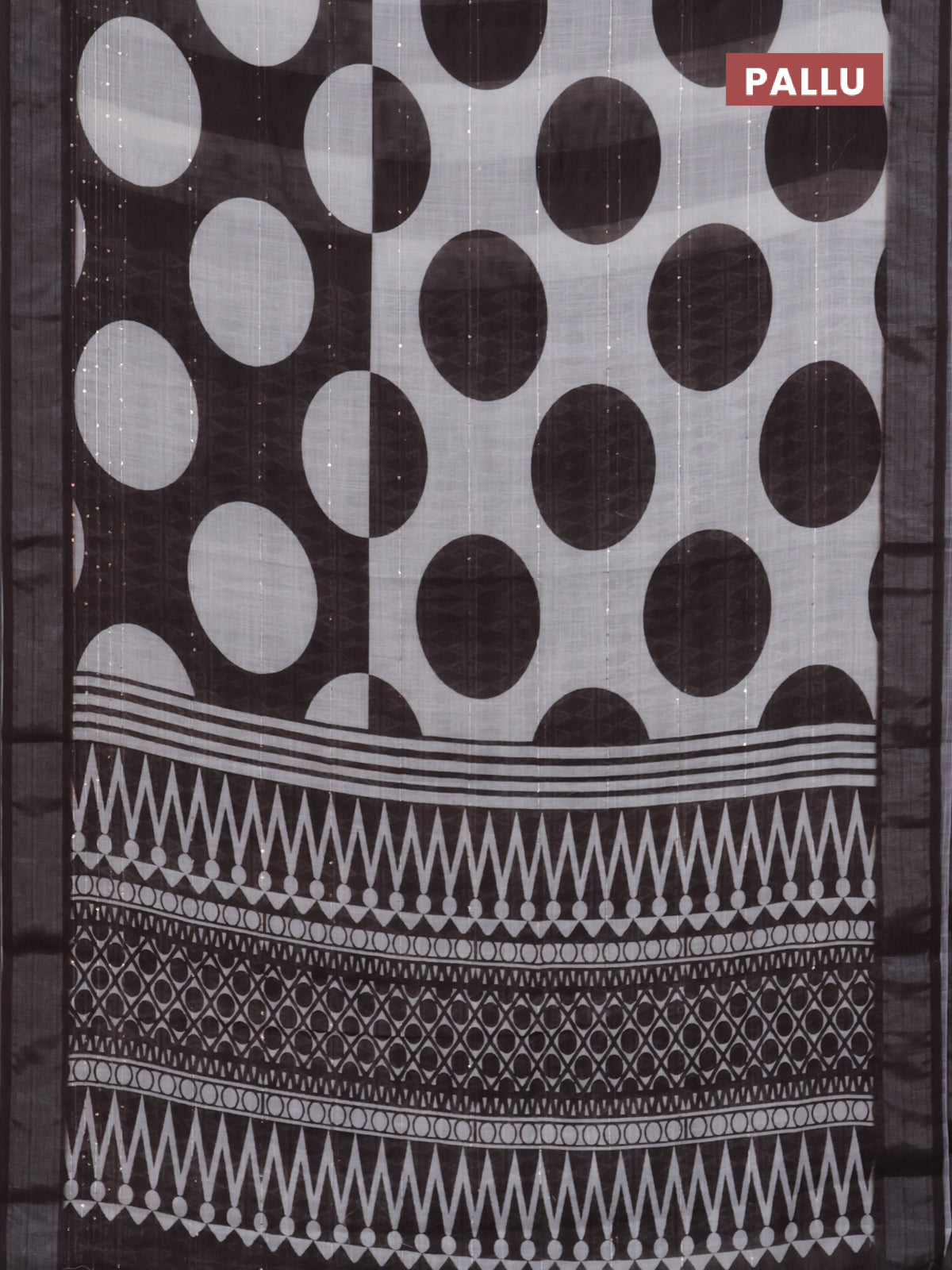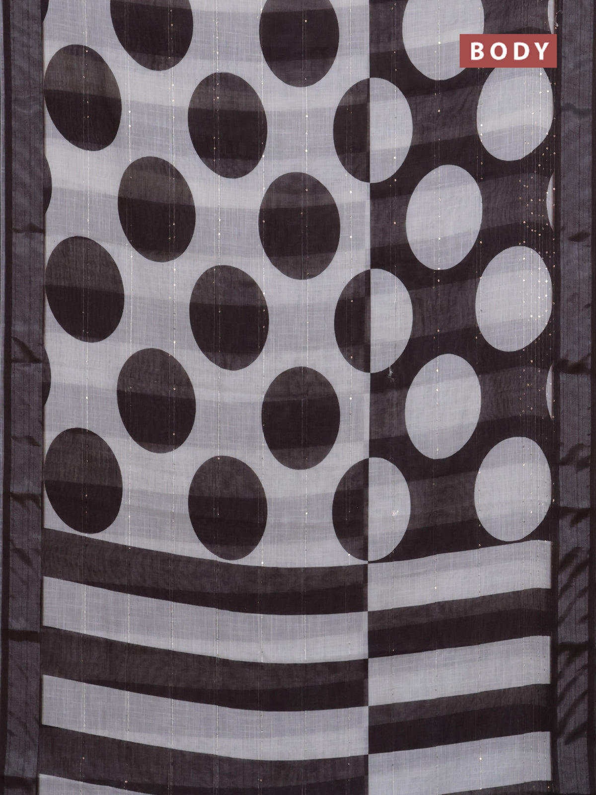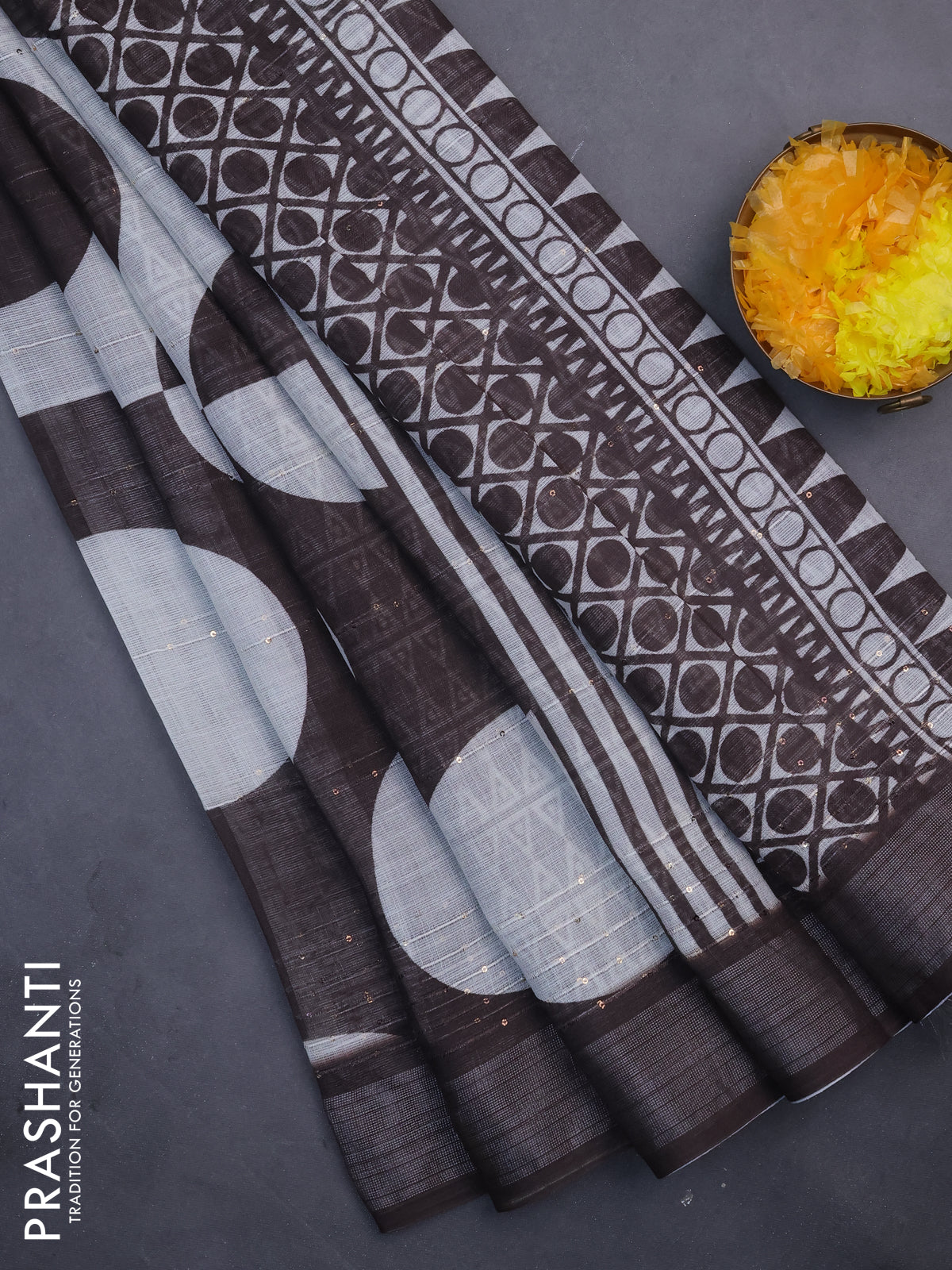 Linen cotton saree off white and brown with geometric butta prints and silver zari woven border