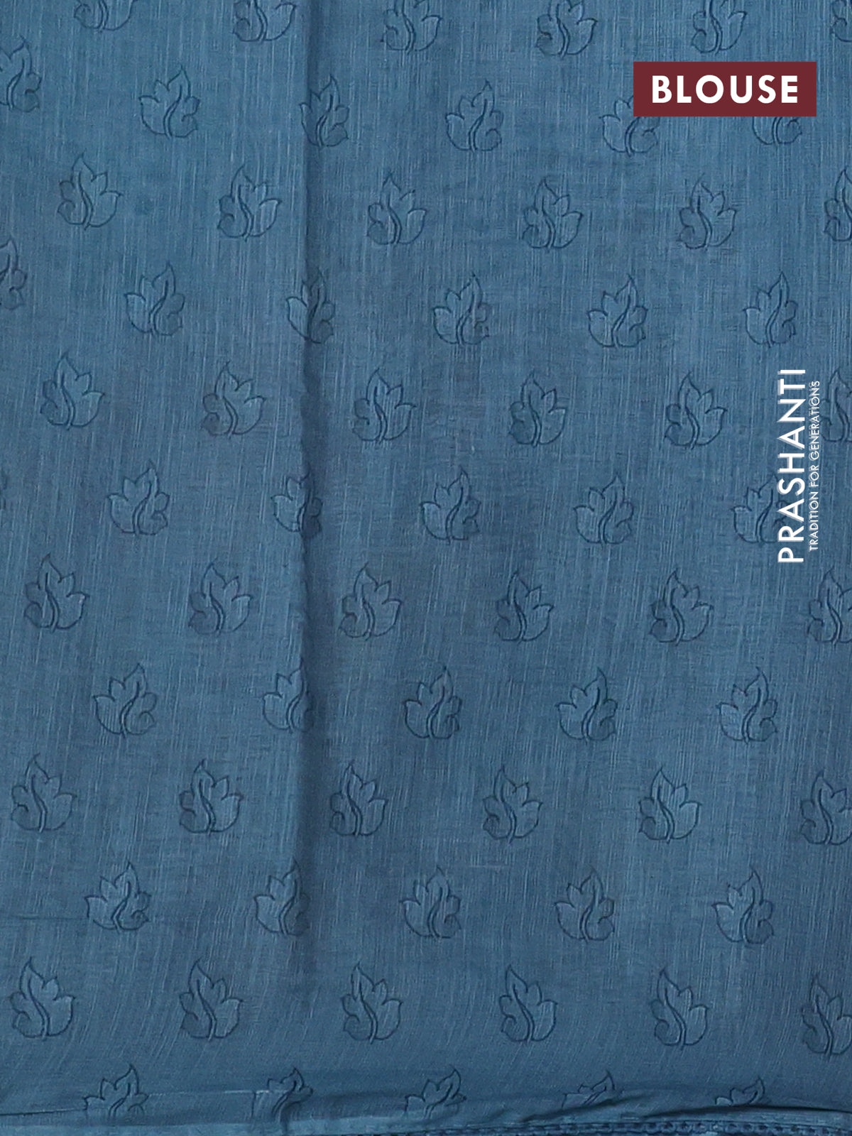Linen cotton saree pastel blue with plain body and long kalamkari printed & embroidery work border