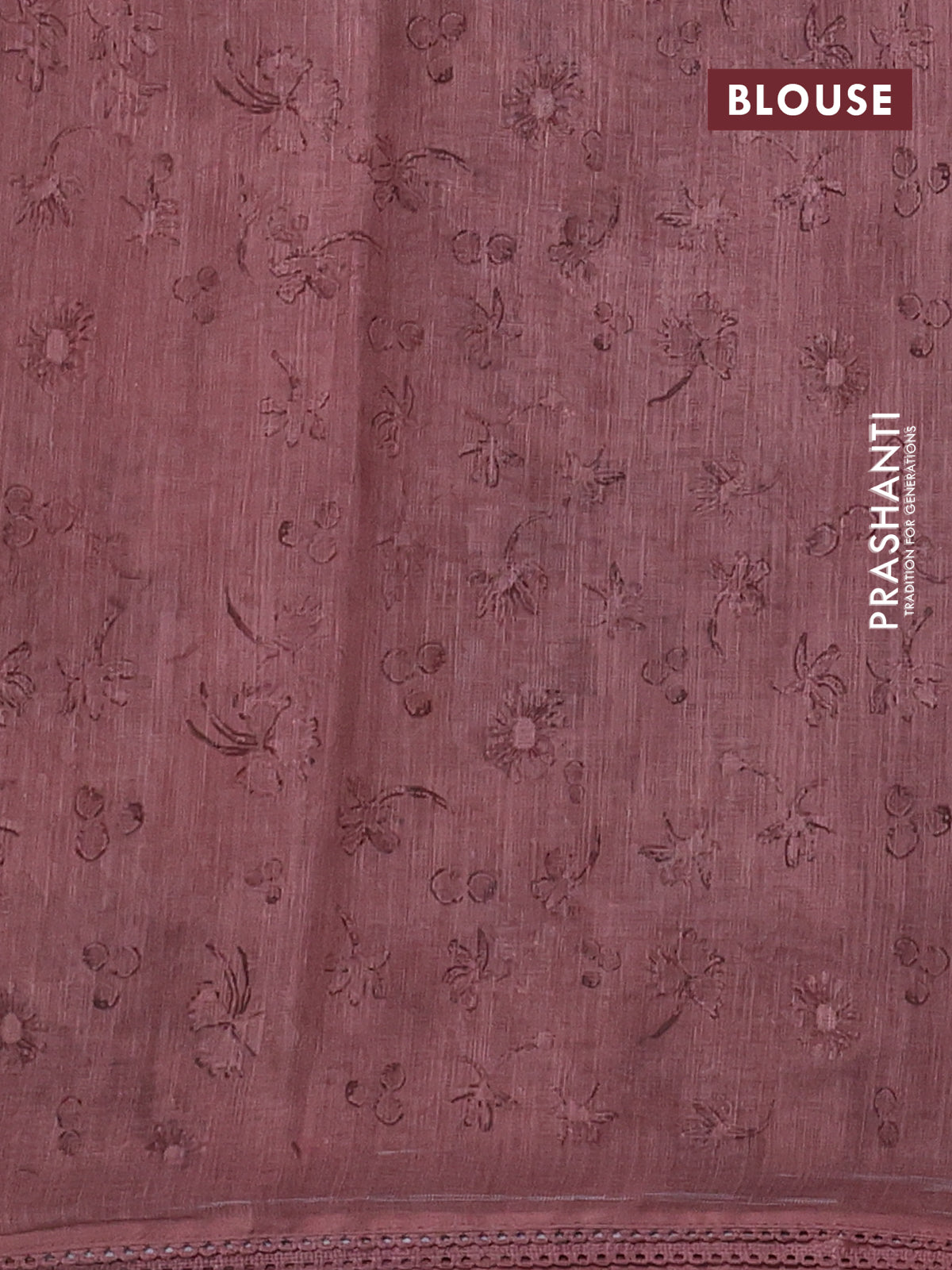 Linen cotton saree rust shade with allover prints & pita work and lace work border