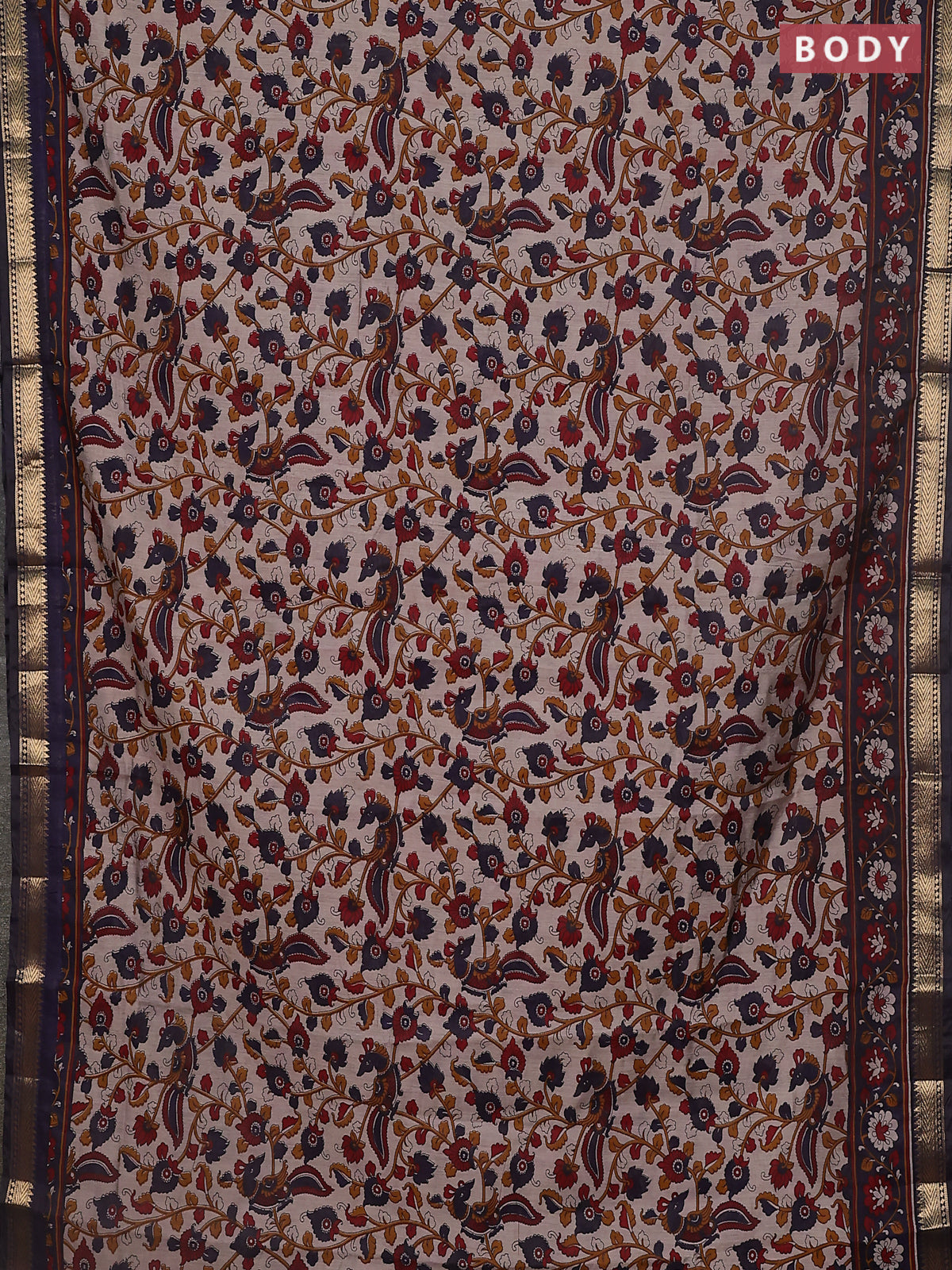 Maheshwari cotton saree beige and navy blue with allover kalamkari prints and zari woven border