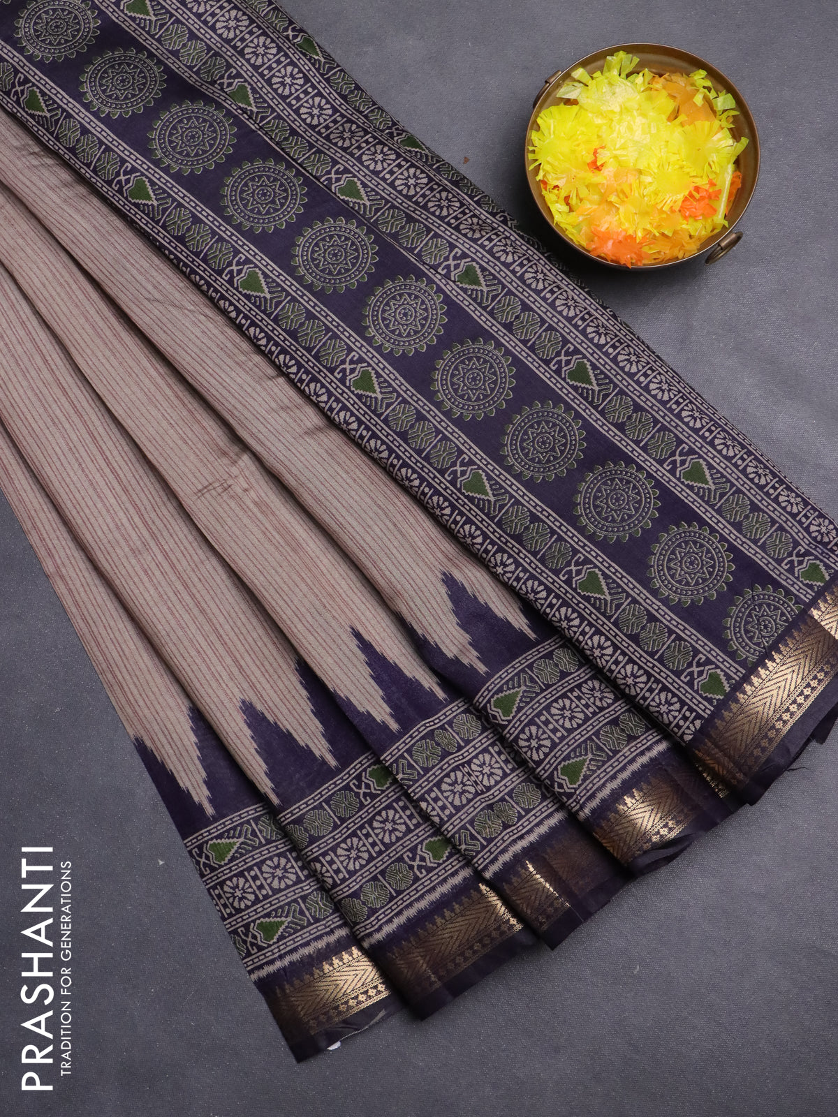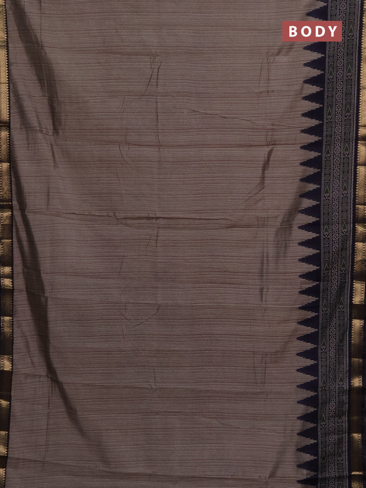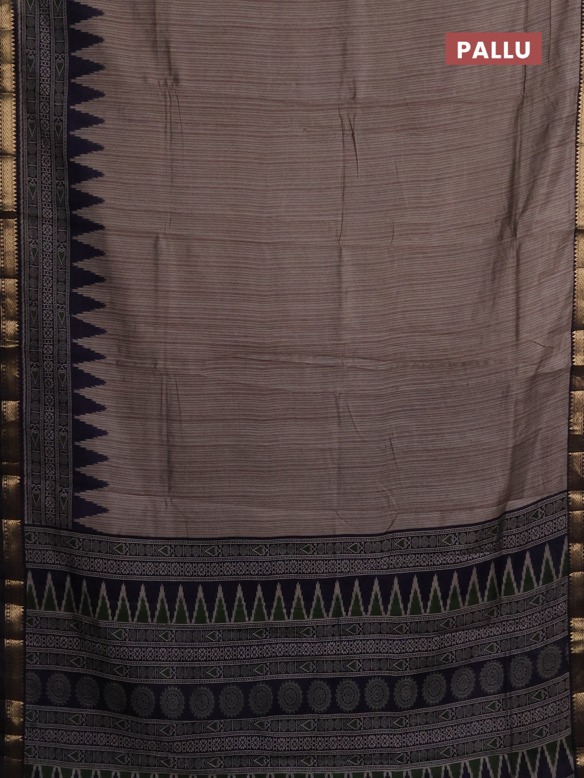 Maheshwari cotton saree grey shade and navy blue with allover stripes pattern and zari woven border