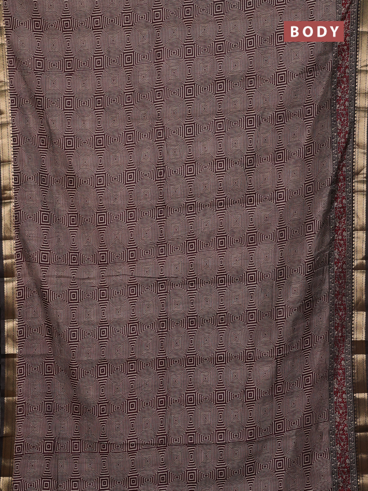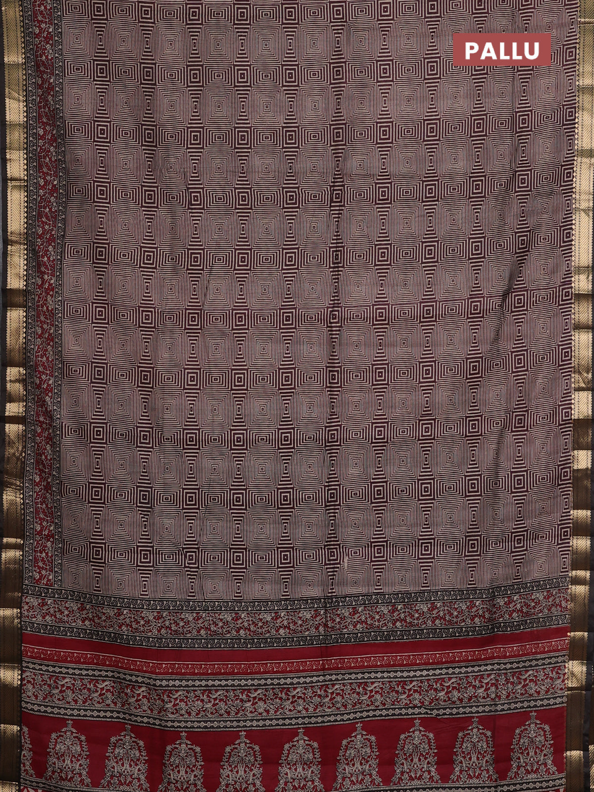 Maheshwari cotton saree maroon and brown with allover geometric prints and zari woven border