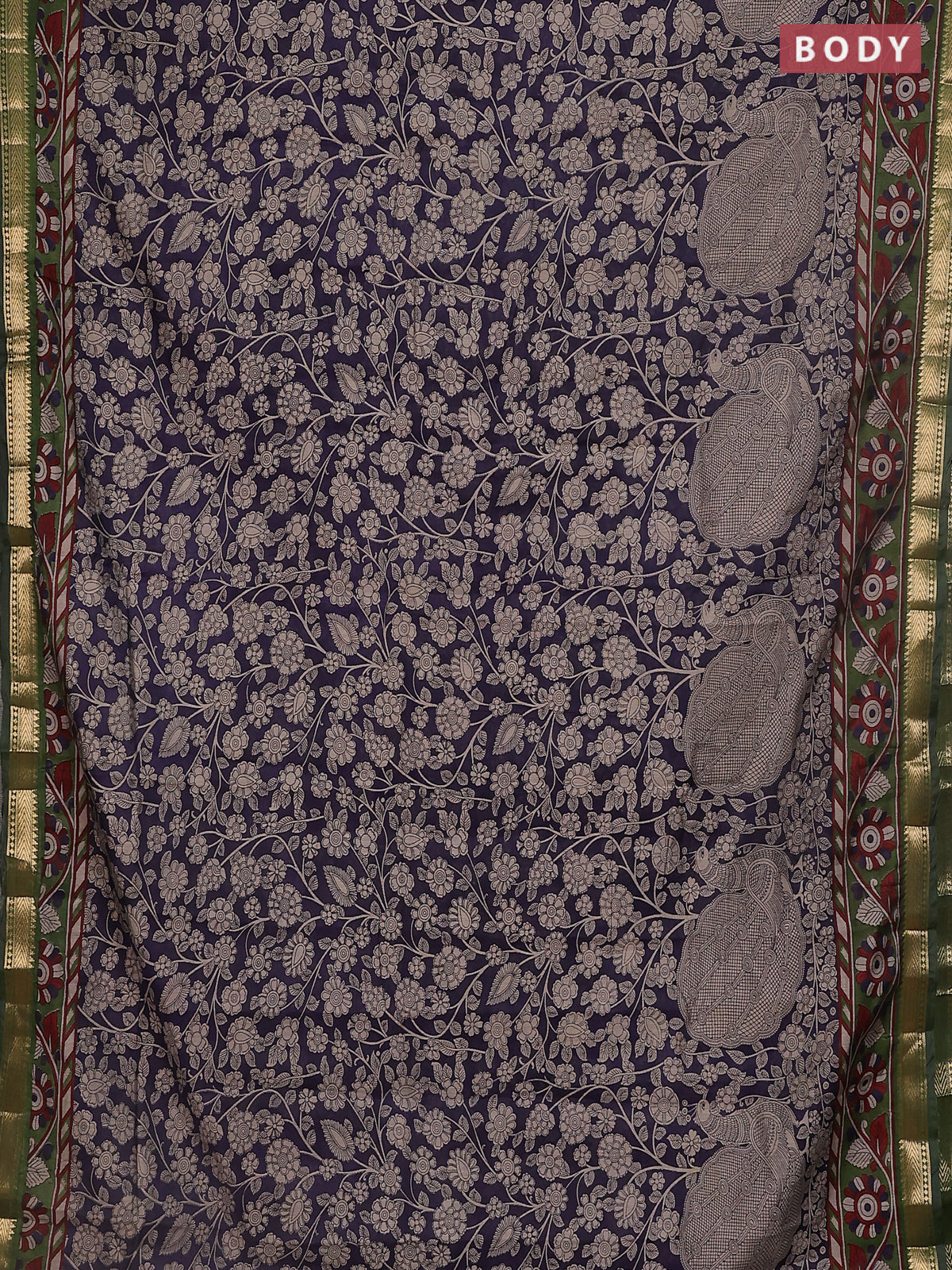 Maheshwari cotton saree navy blue and sap green with allover flower prints and zari woven border