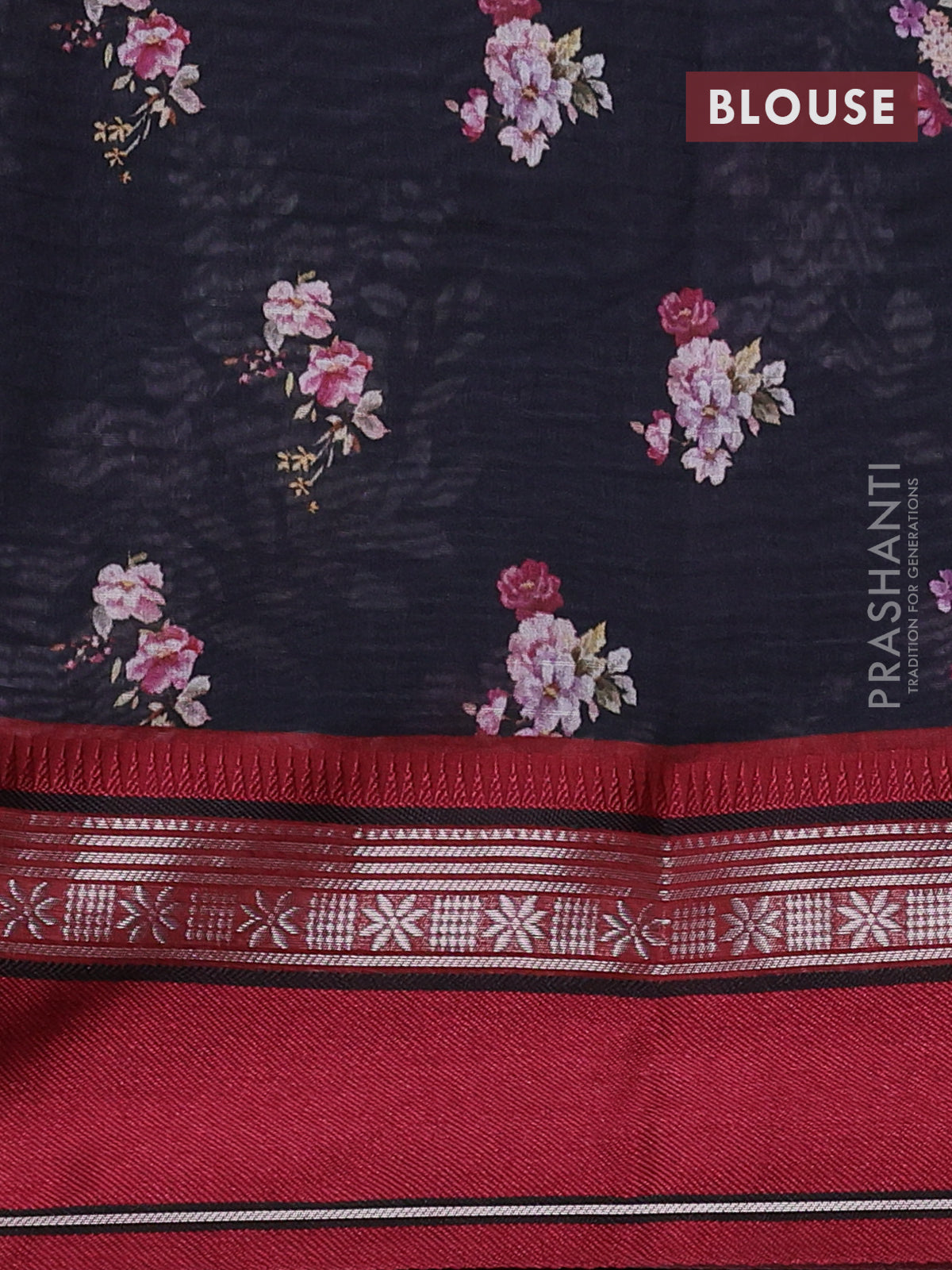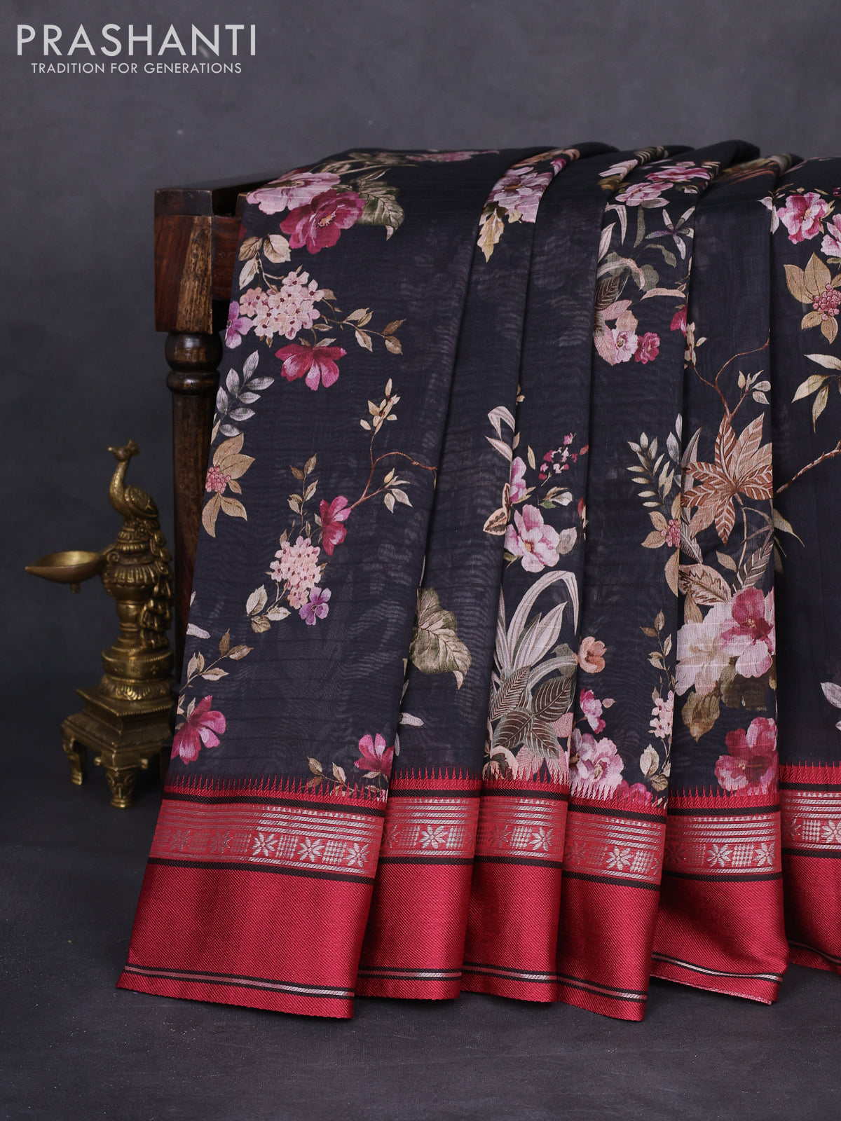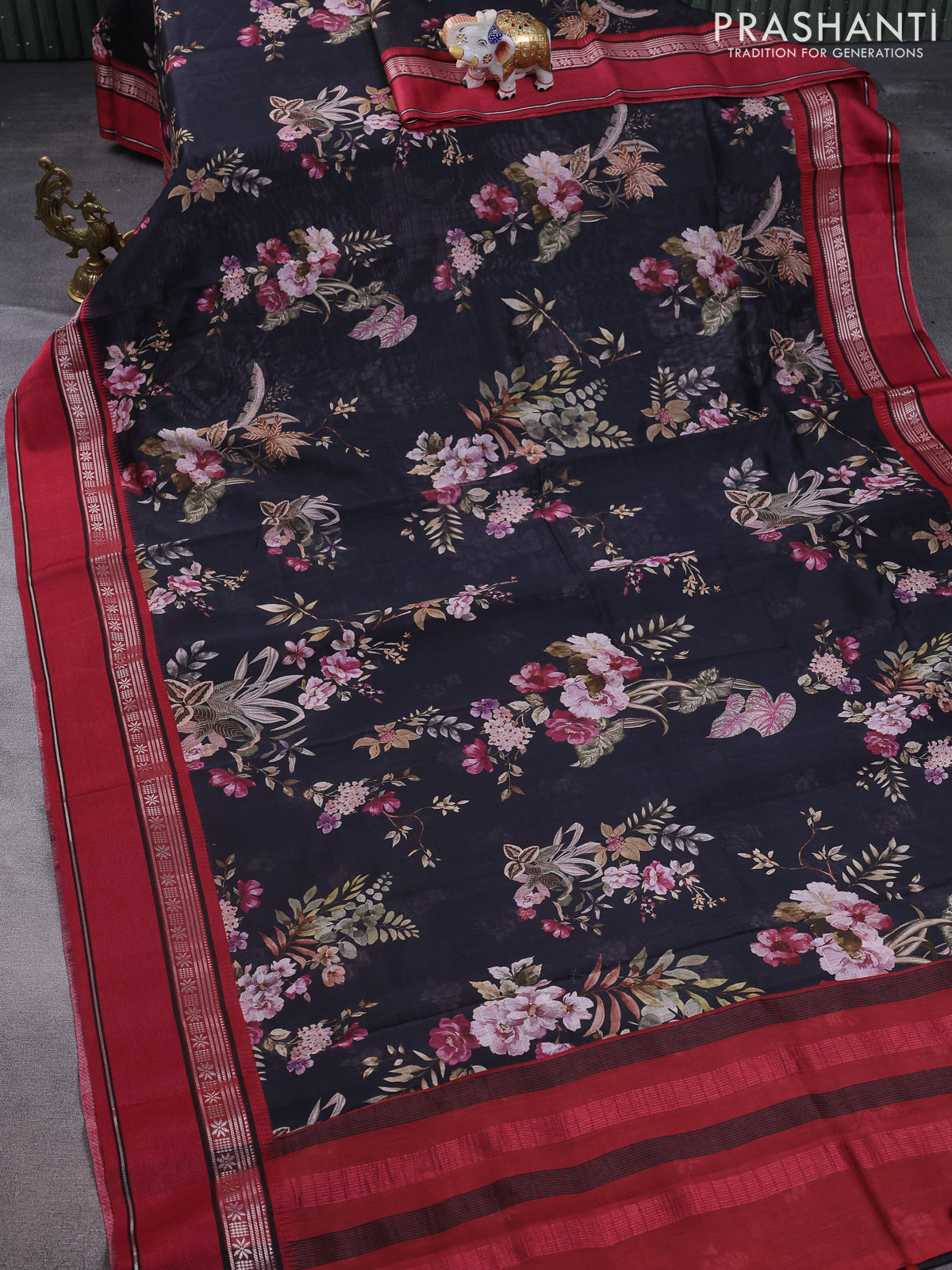 Maheshwari silk cotton saree black and maroon with allover floral digital prints and rettapet thread woven border