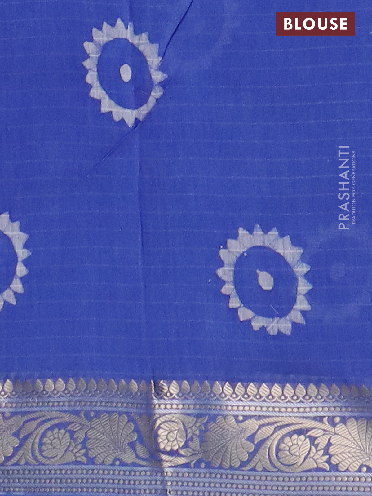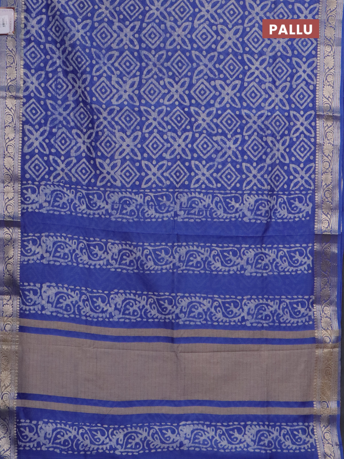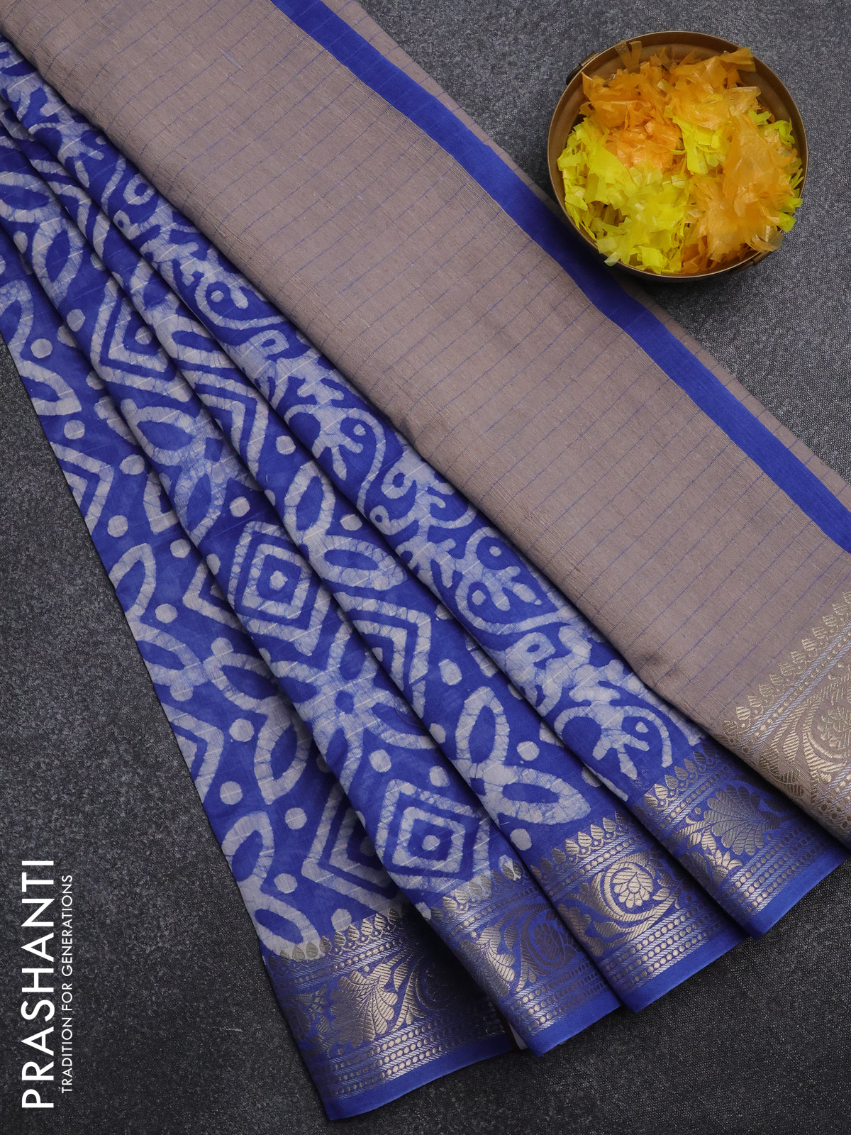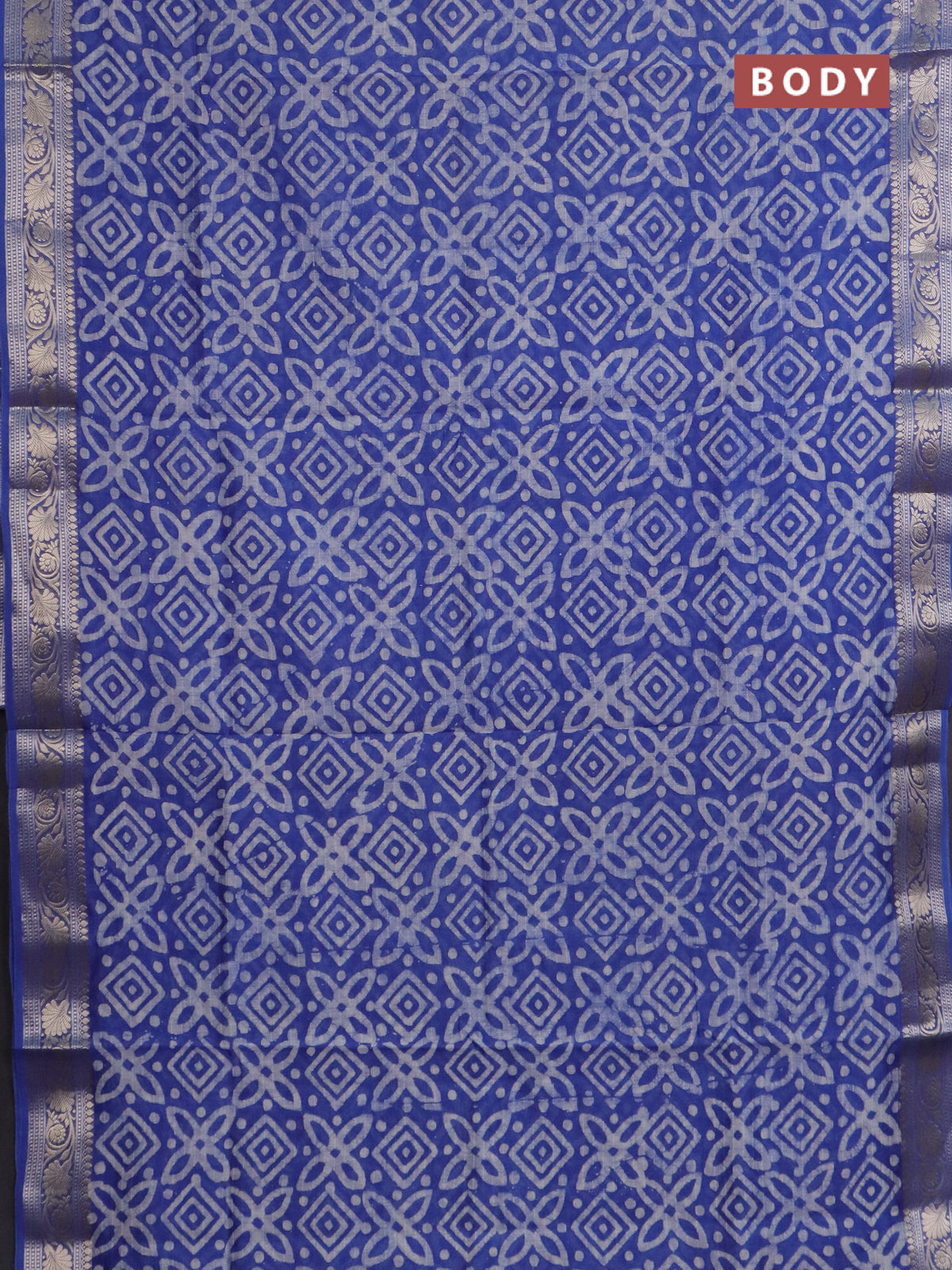Maheshwari silk cotton saree blue with batik prints and zari woven border