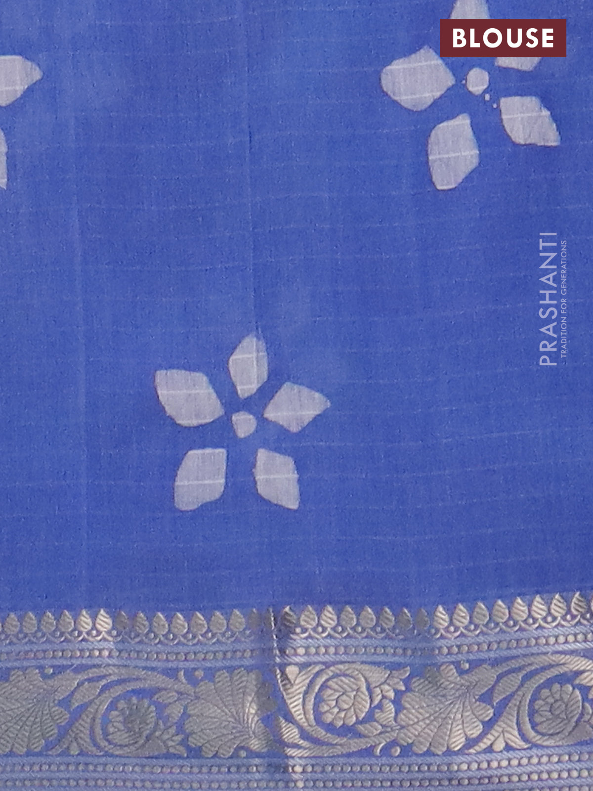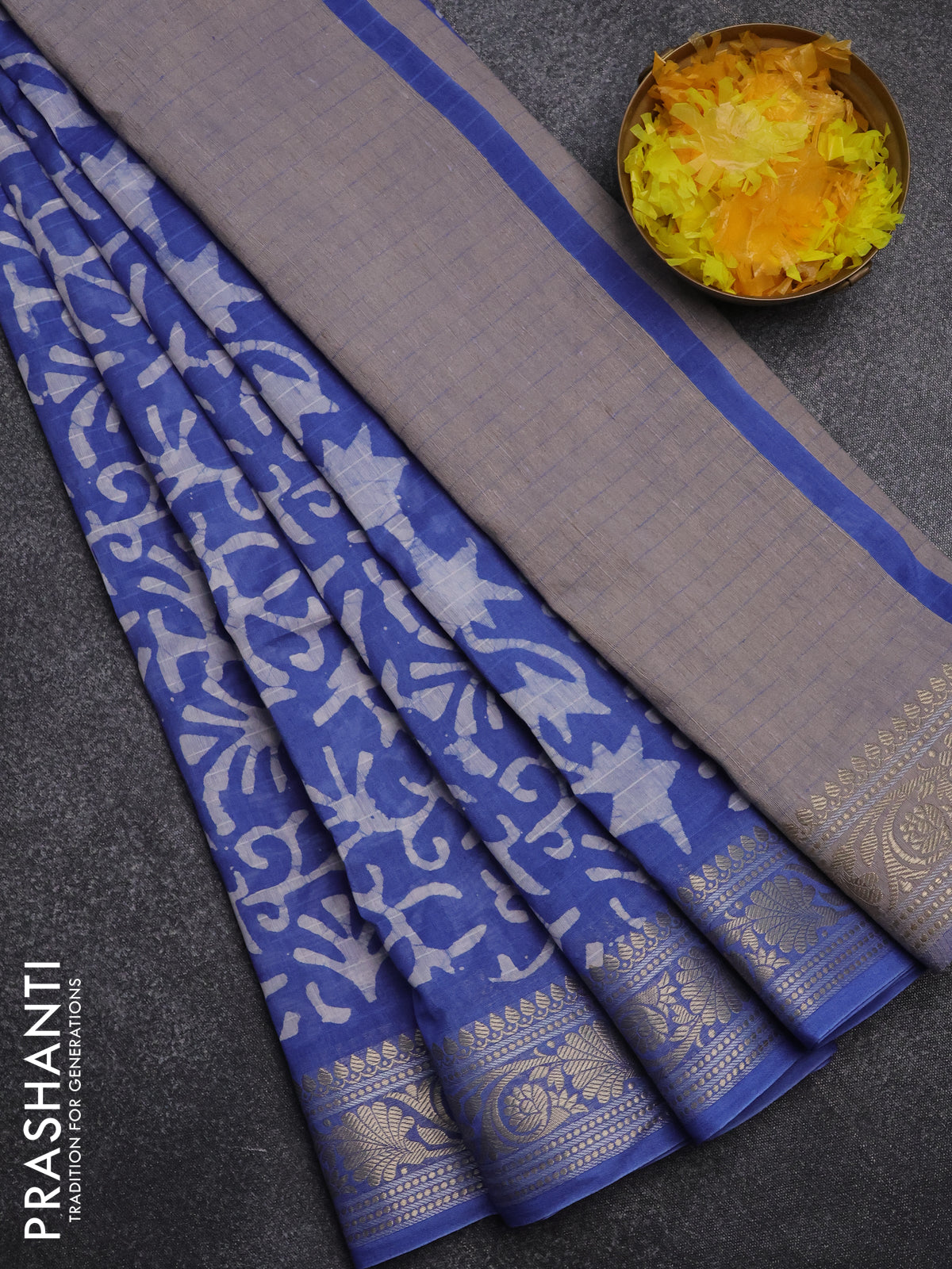 Maheshwari silk cotton saree blue with batik prints and zari woven border