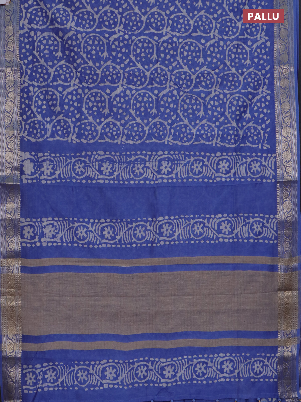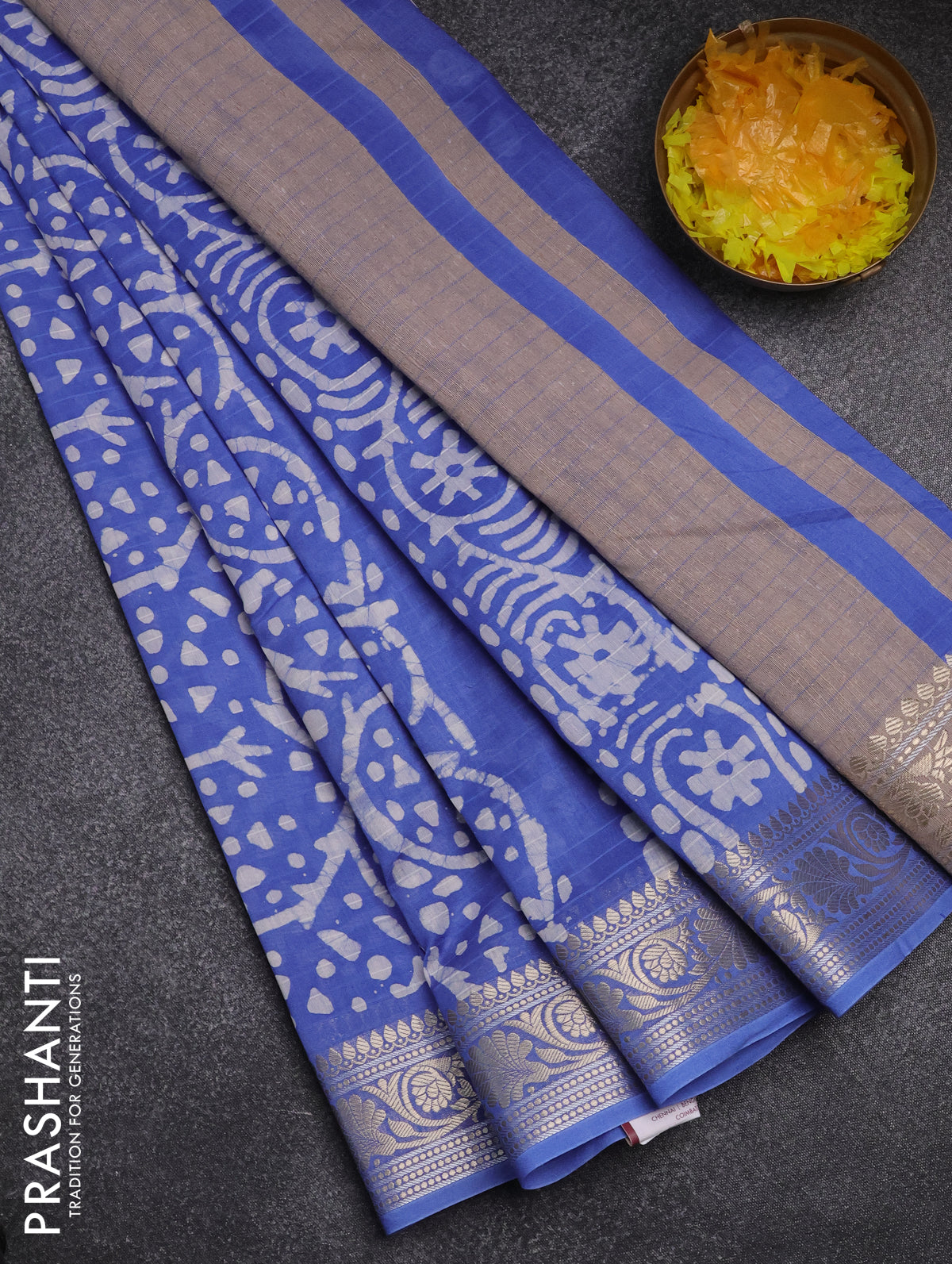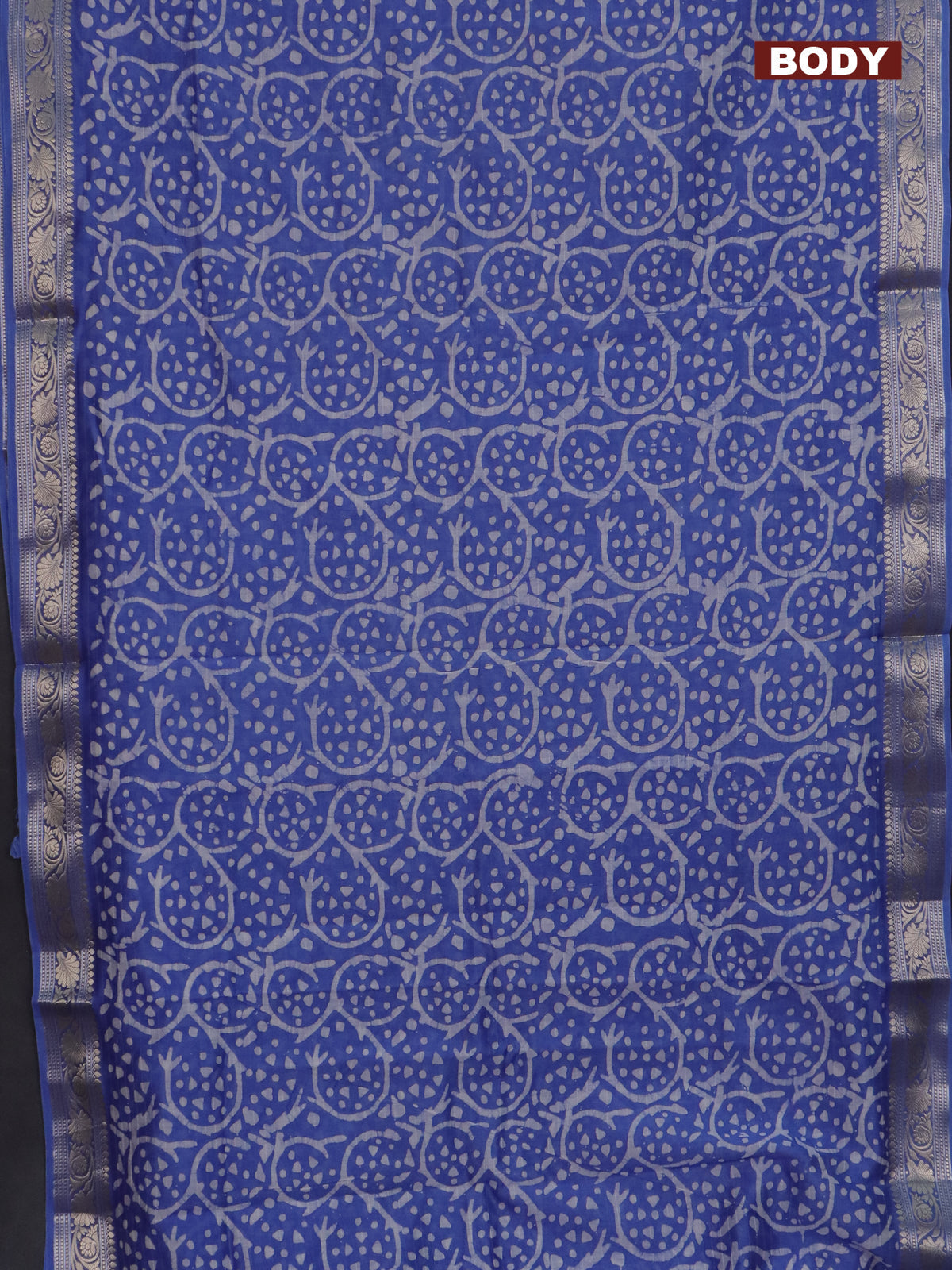 Maheshwari silk cotton saree blue with batik prints and zari woven border