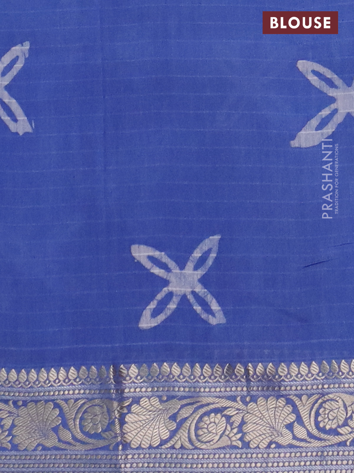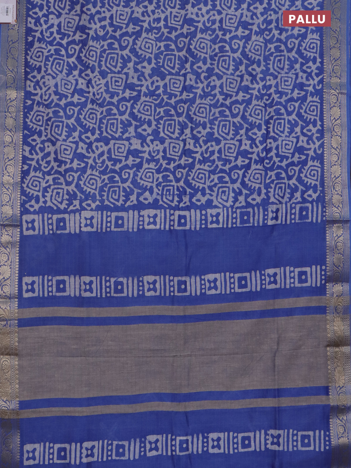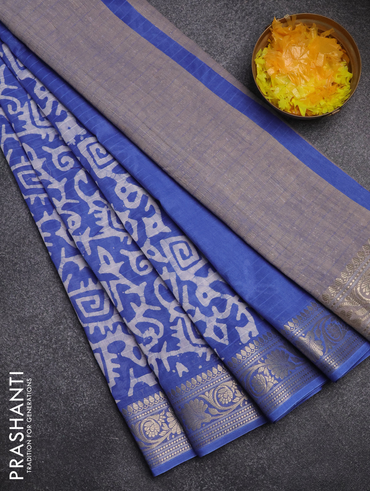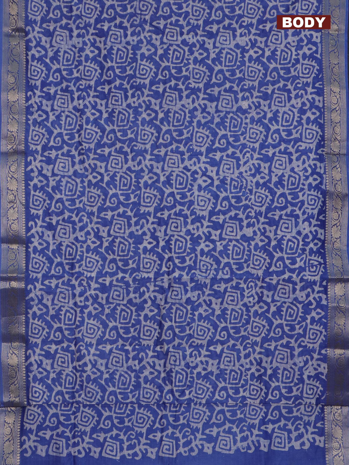 Maheshwari silk cotton saree blue with batik prints and zari woven border