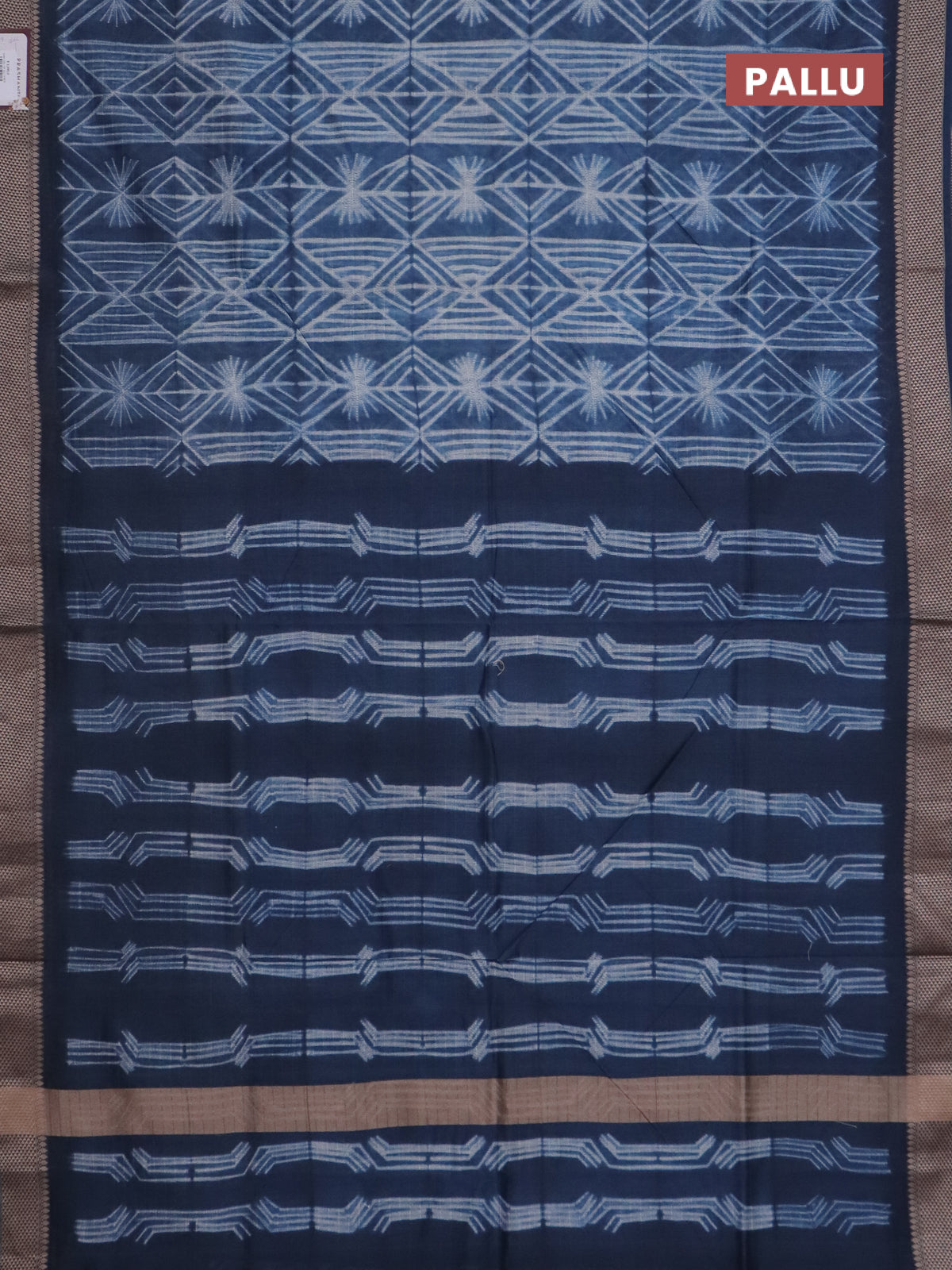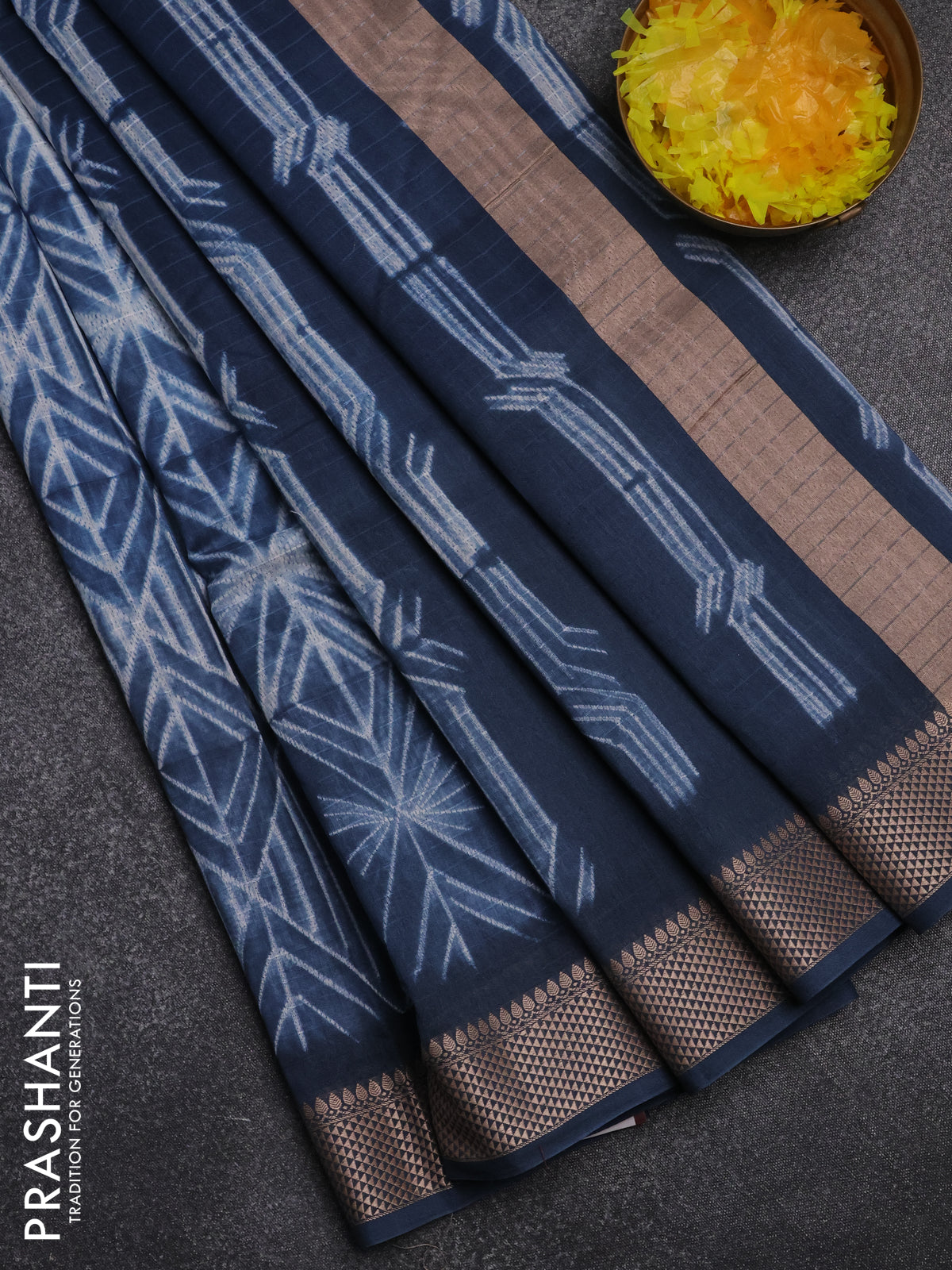 Maheshwari silk cotton saree dark peacock blue with allover shibori prints and thread woven border