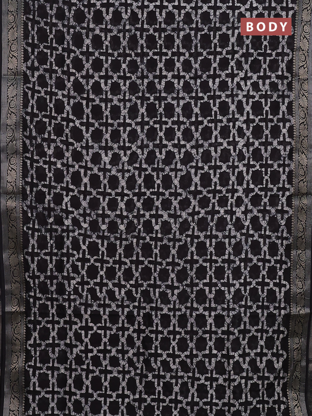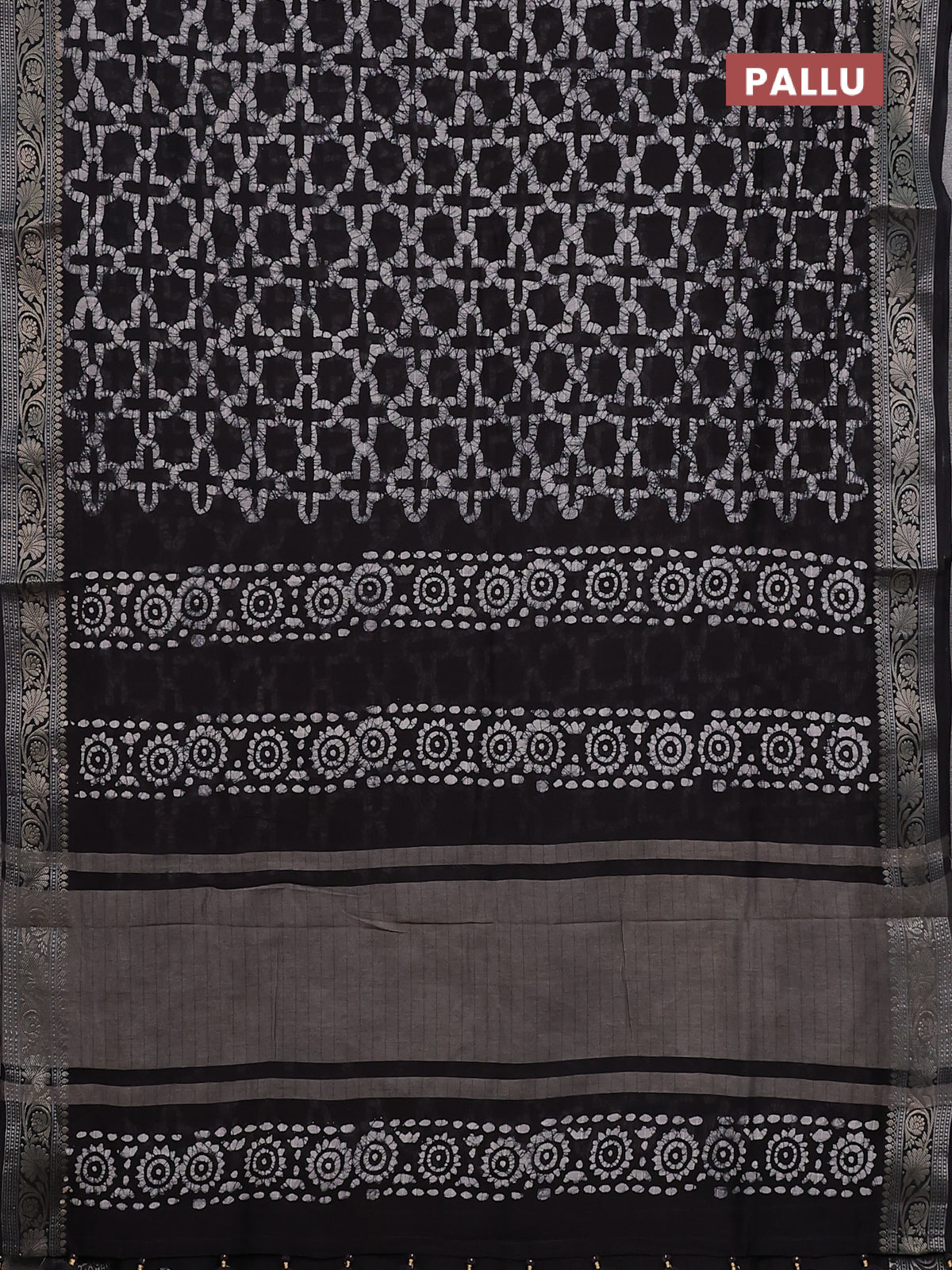 Maheshwari silk cotton saree deep coffee brown with allover batik prints and zari woven border