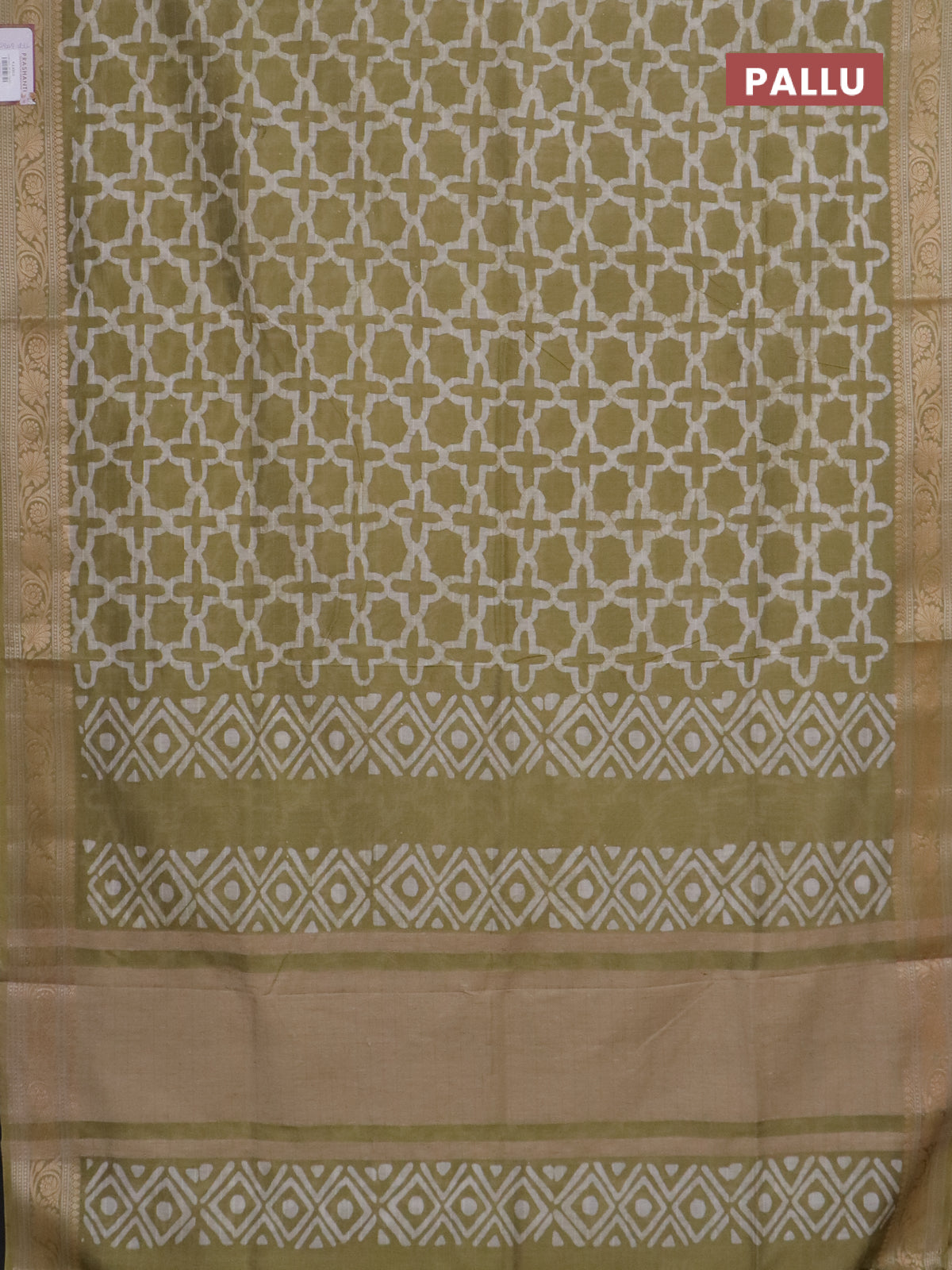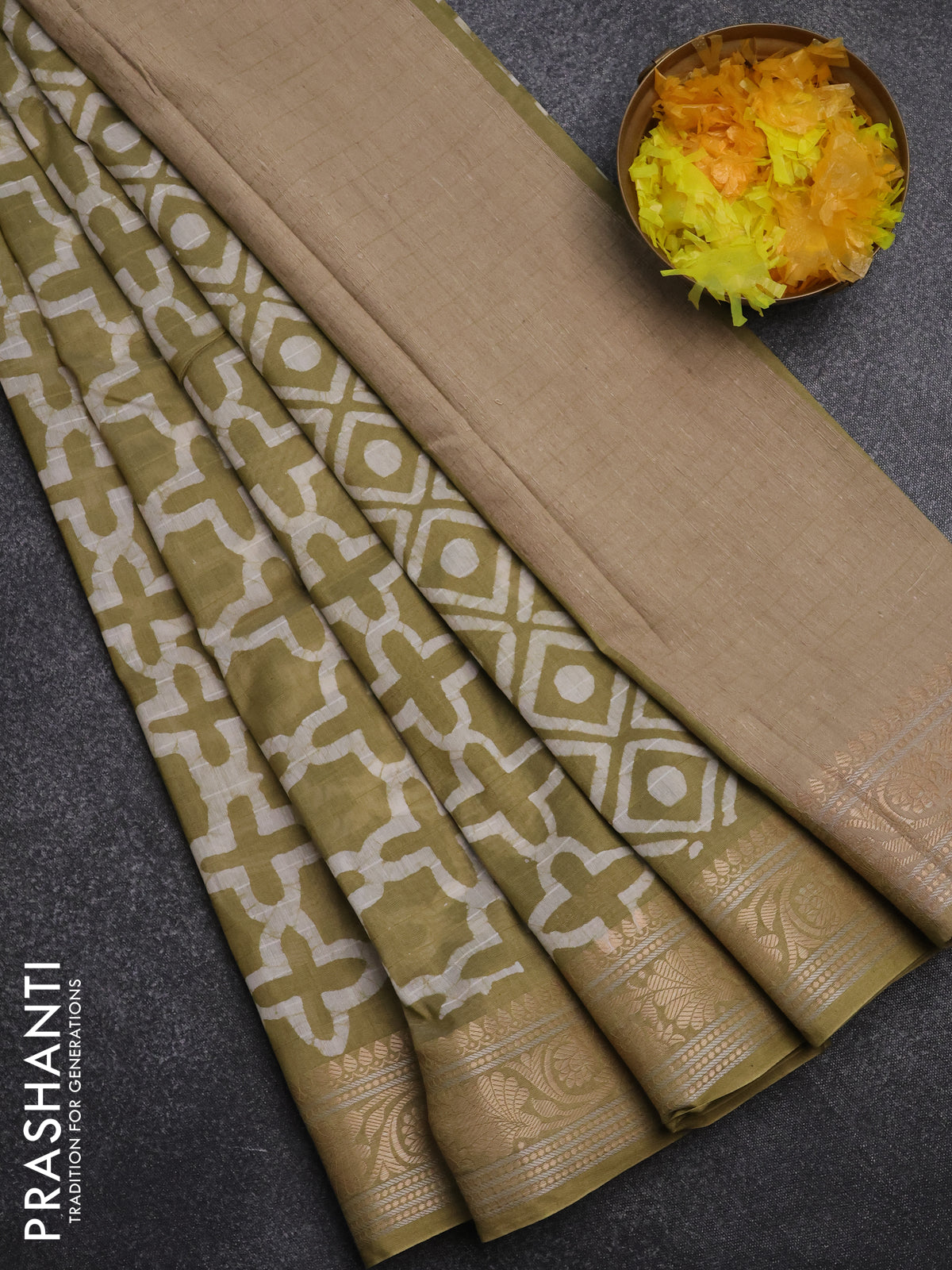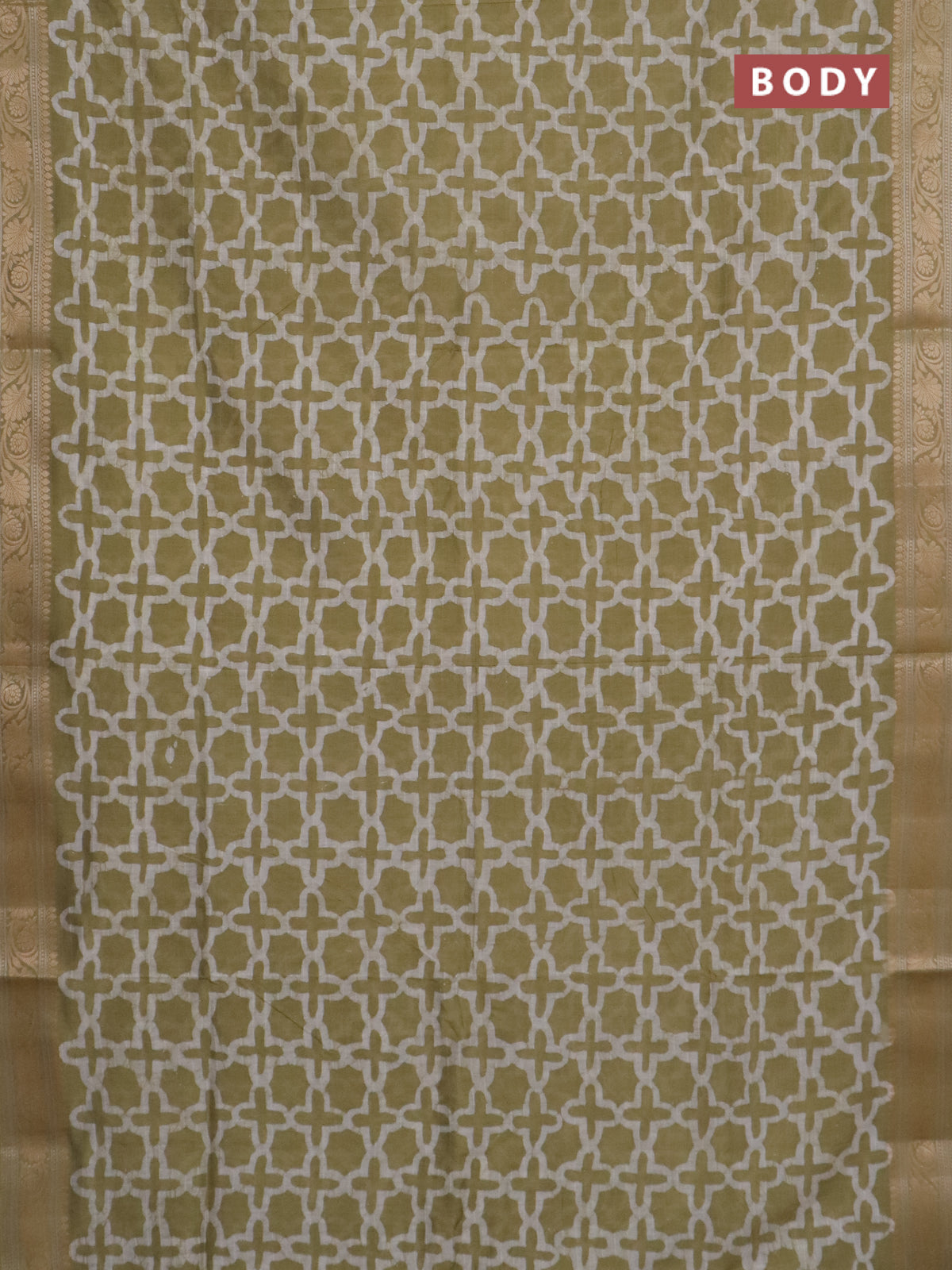 Maheshwari silk cotton saree elaichi green with batik prints and zari woven border