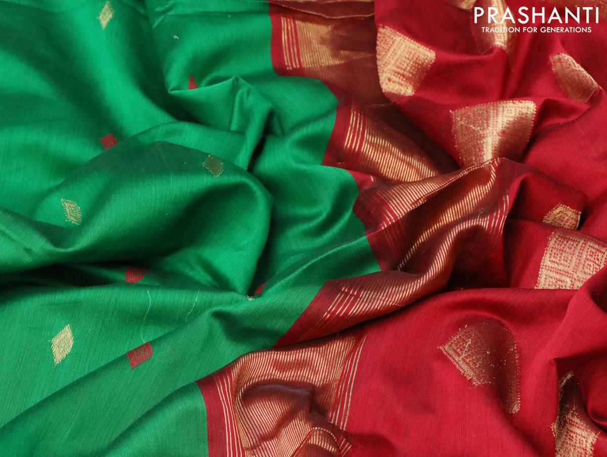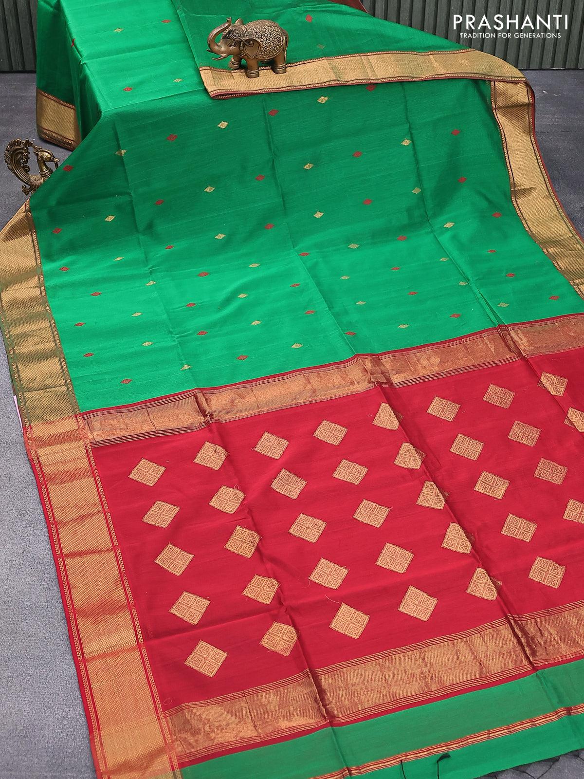 Maheshwari silk cotton saree green and maroon with thread & zari woven buttas and zari woven border