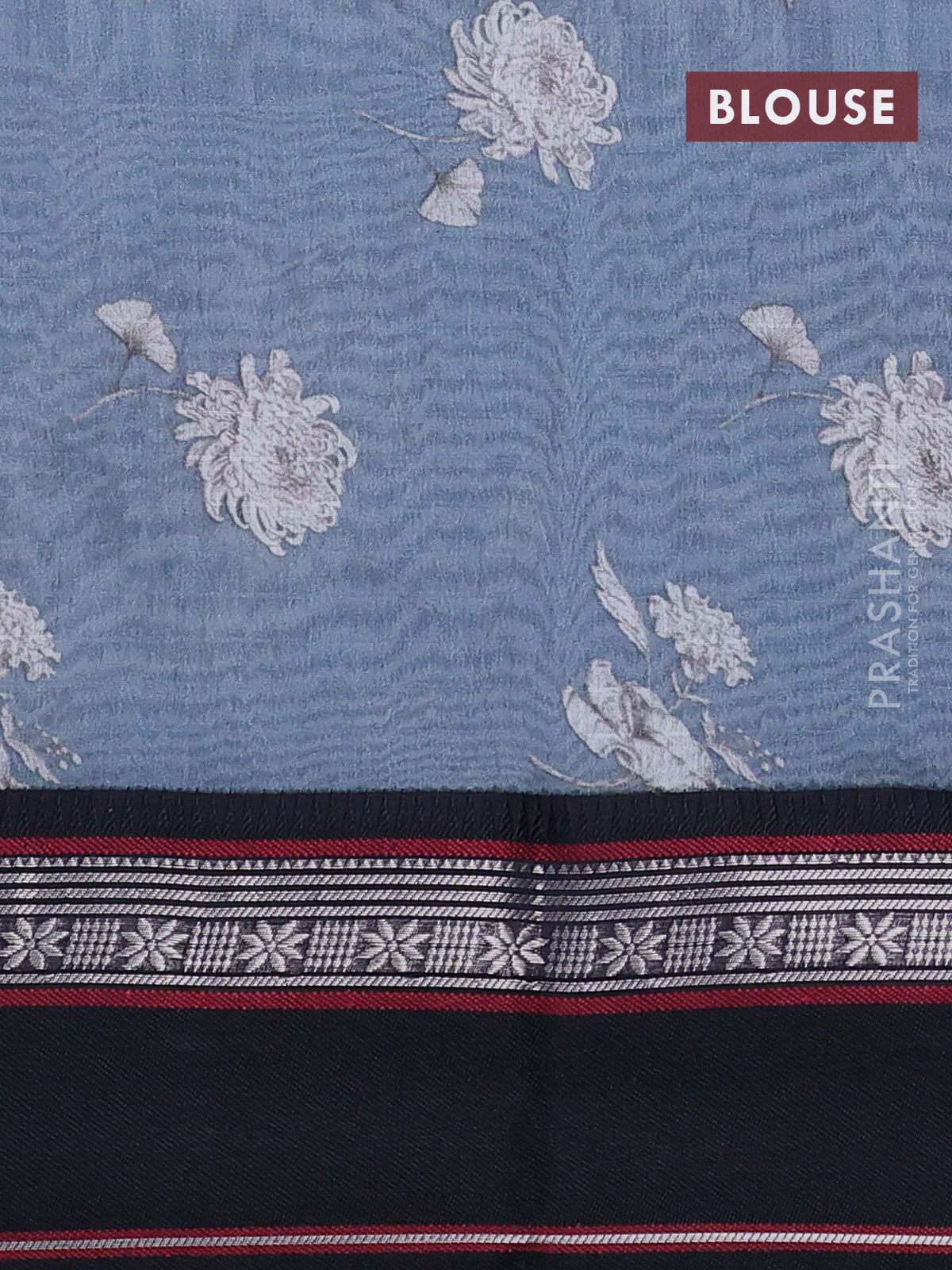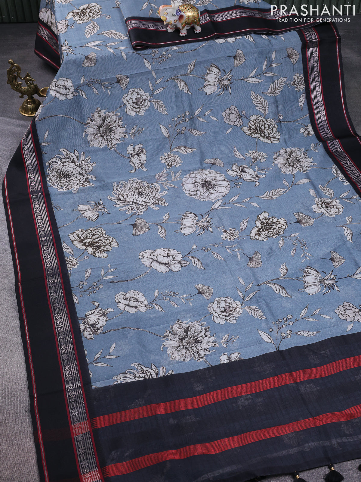Maheshwari silk cotton saree grey and black with allover floral digital prints and rettapet thread woven border