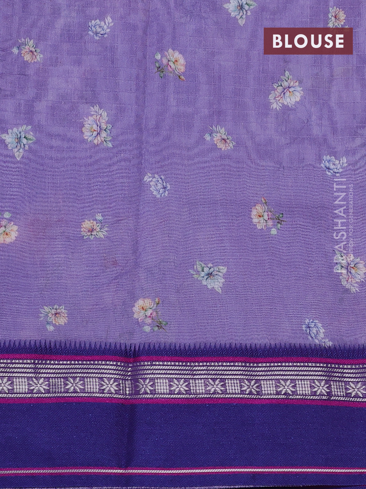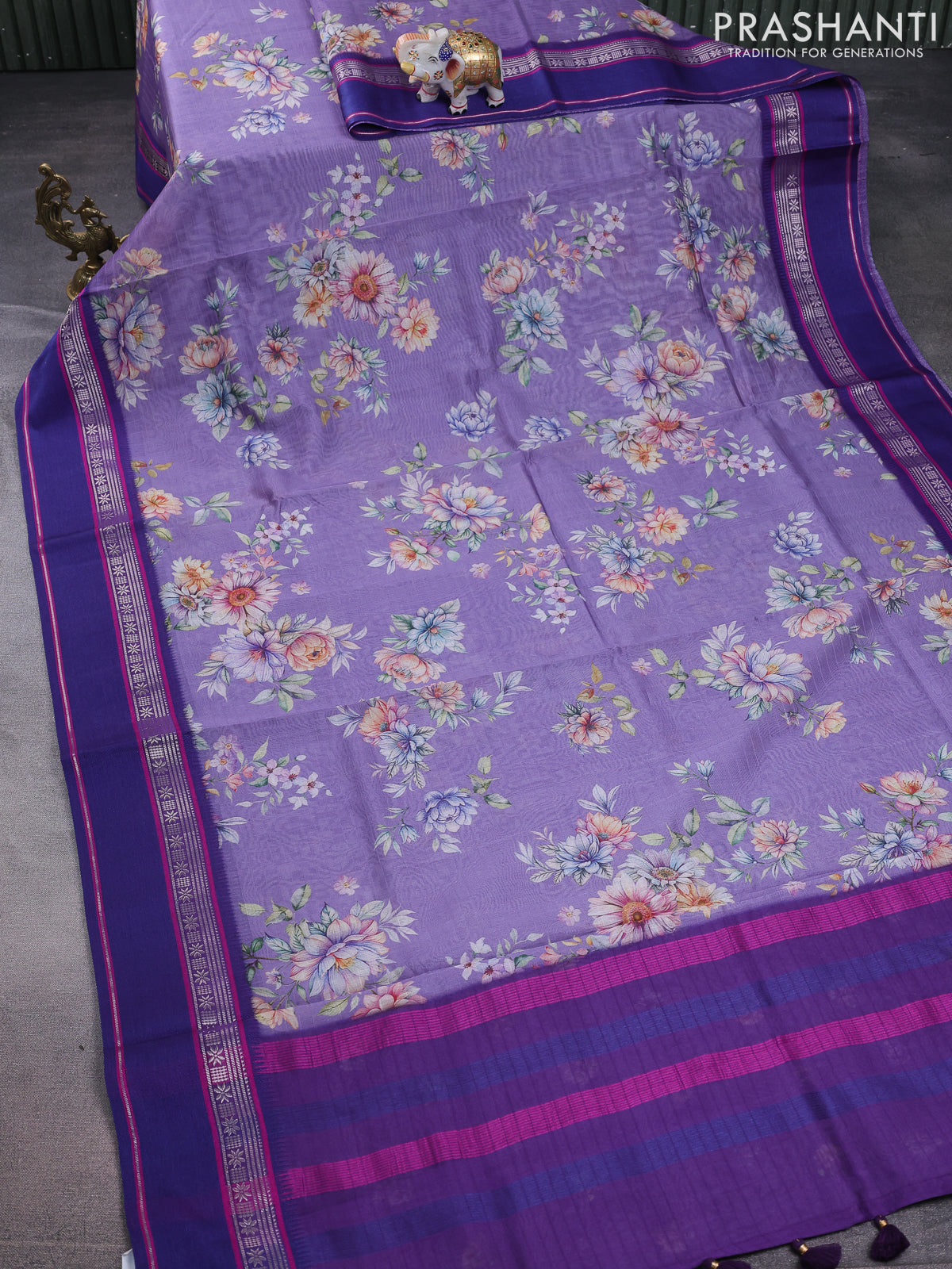 Maheshwari silk cotton saree lavender and purple with allover floral digital prints and rettapet thread woven border