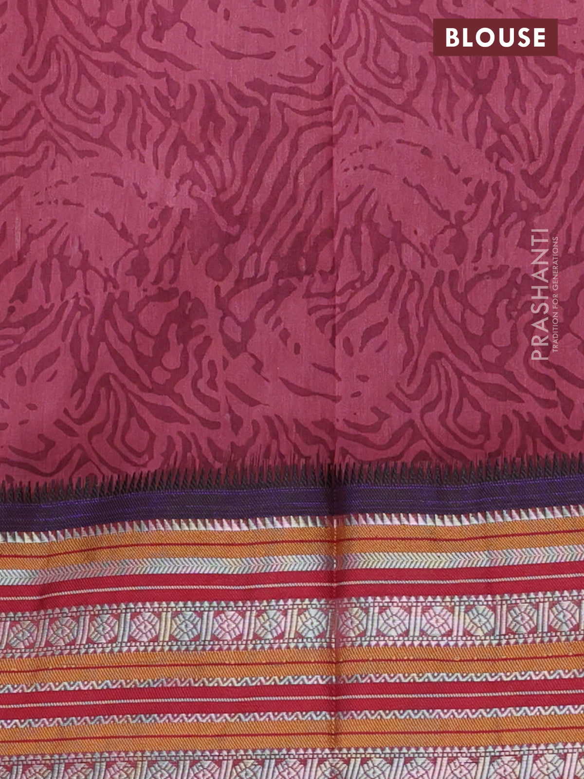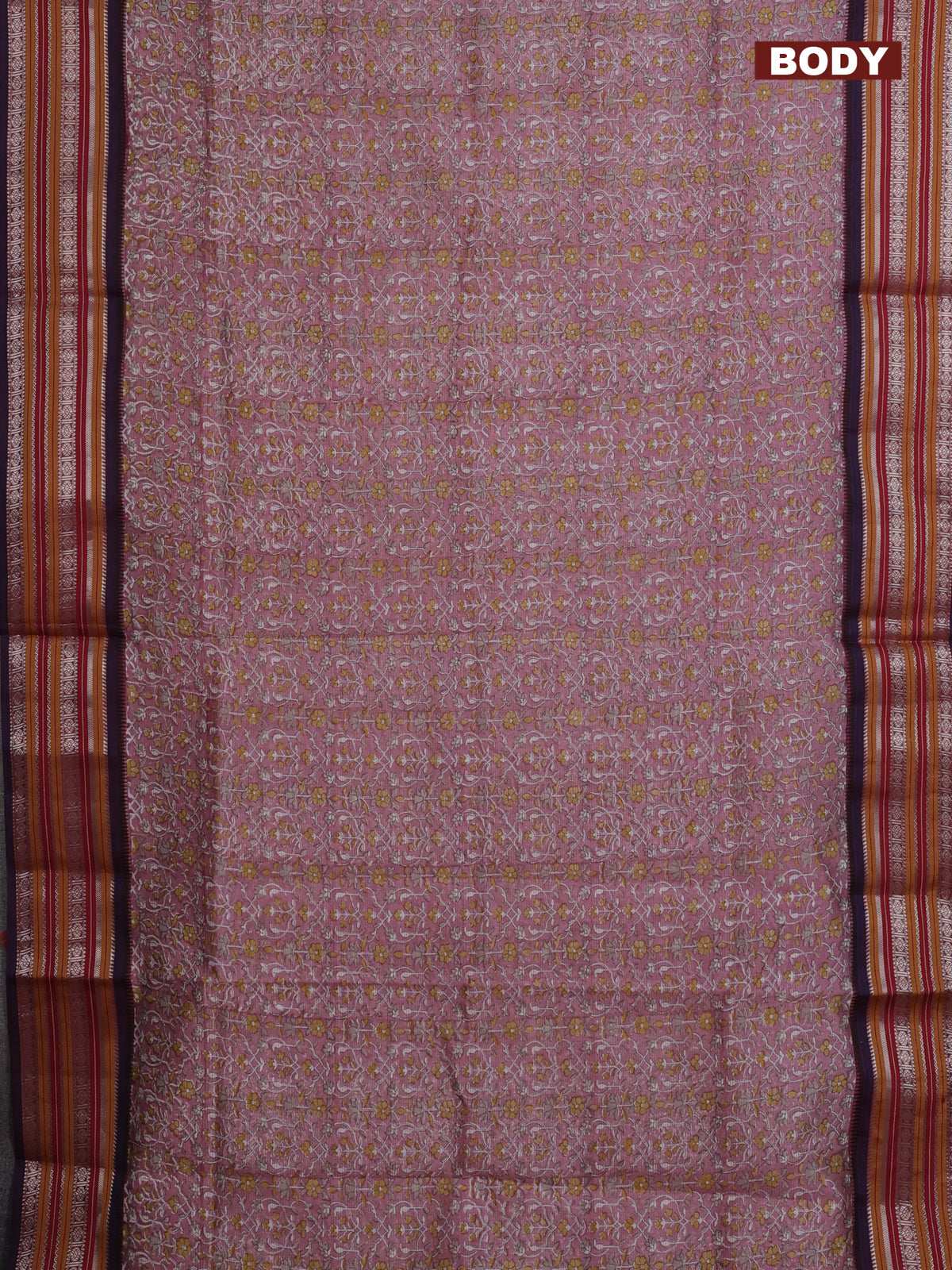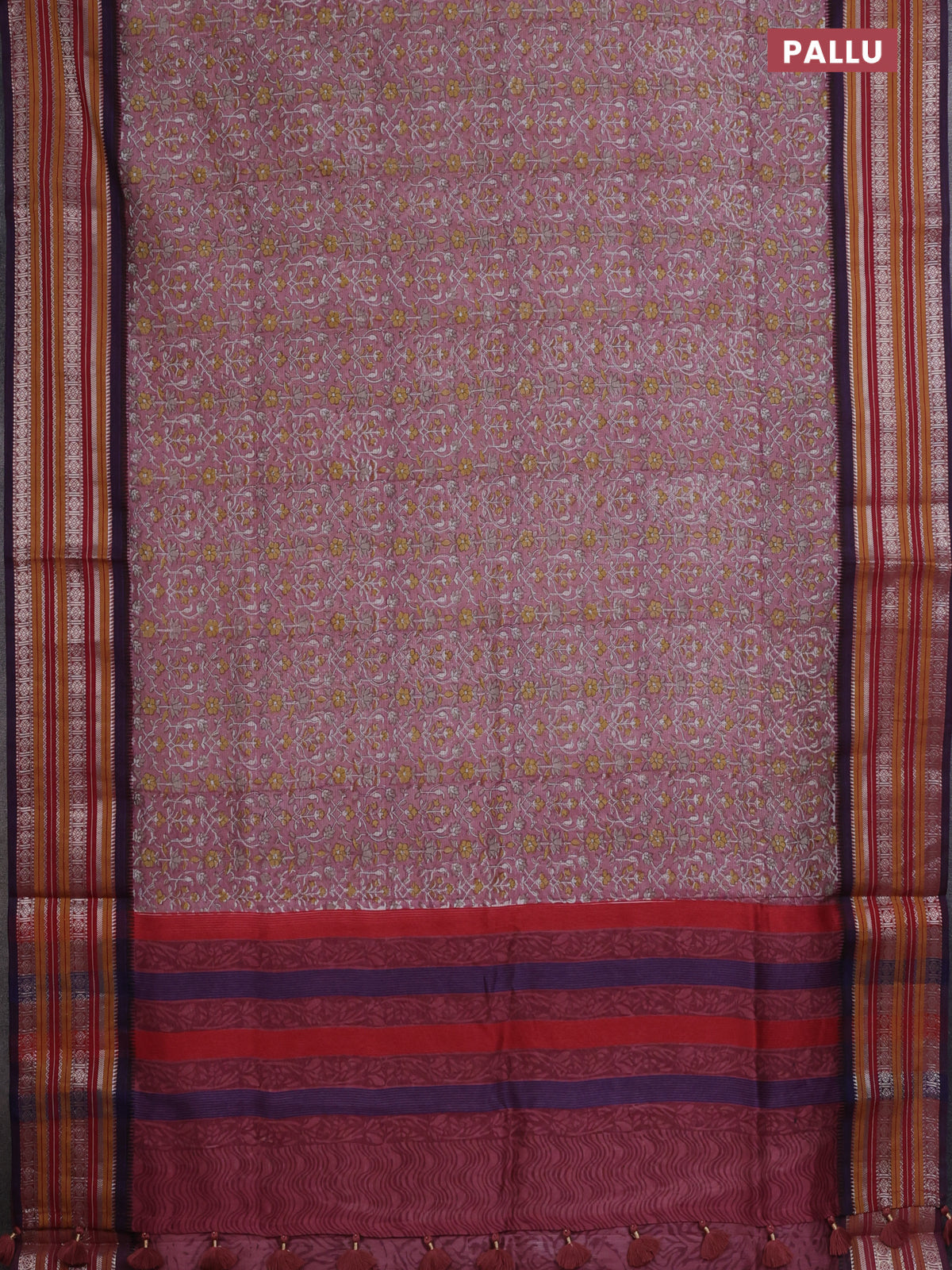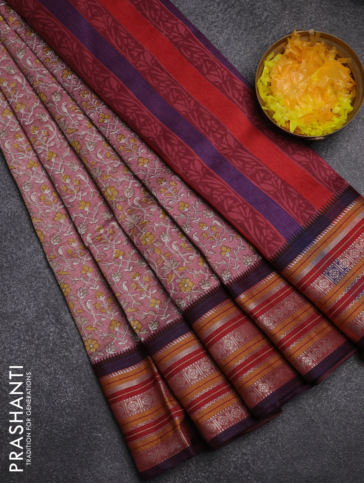 Maheshwari silk cotton saree pastel pink and pastel maroon with allover prints and thread & silver zari woven border