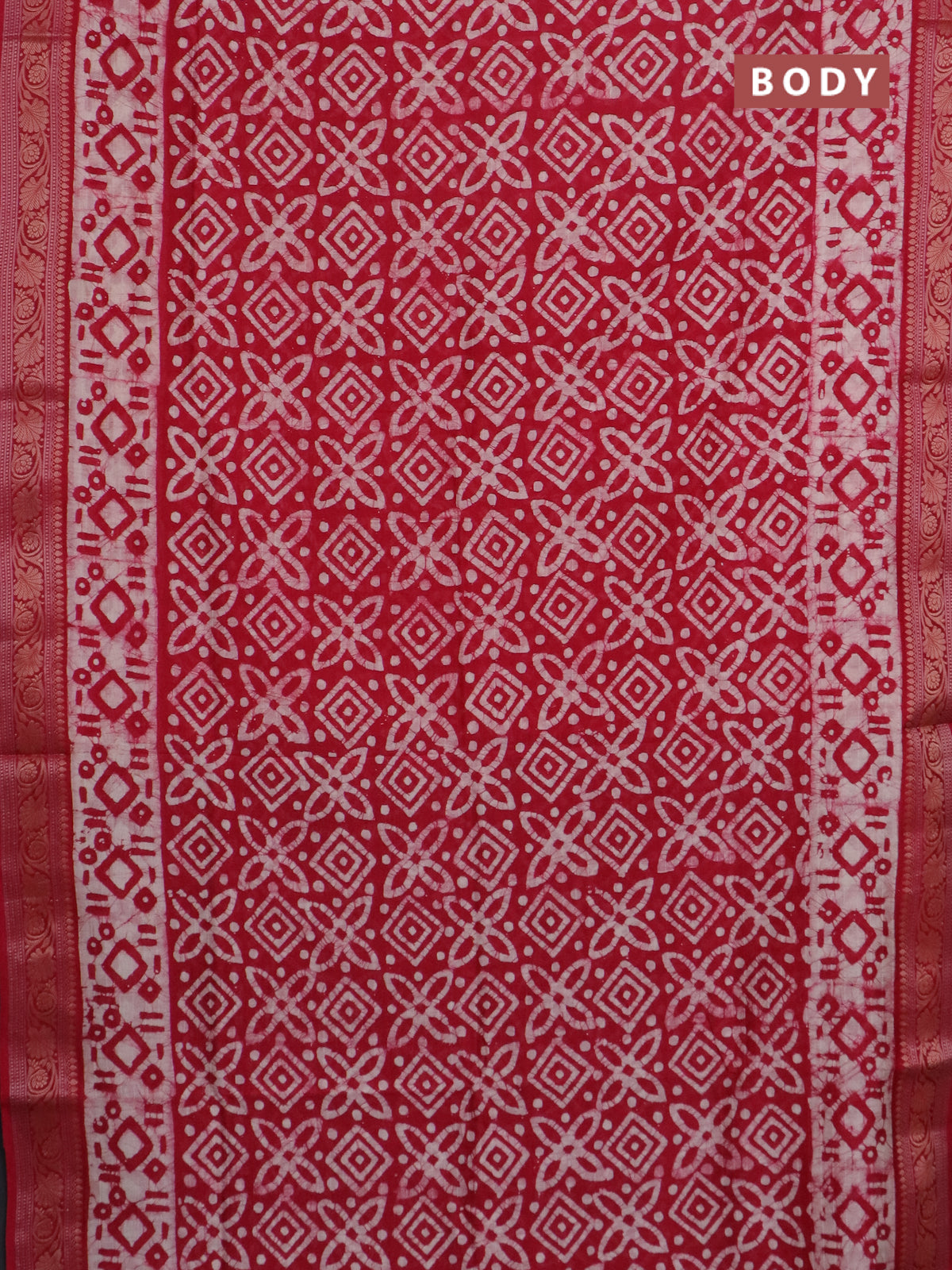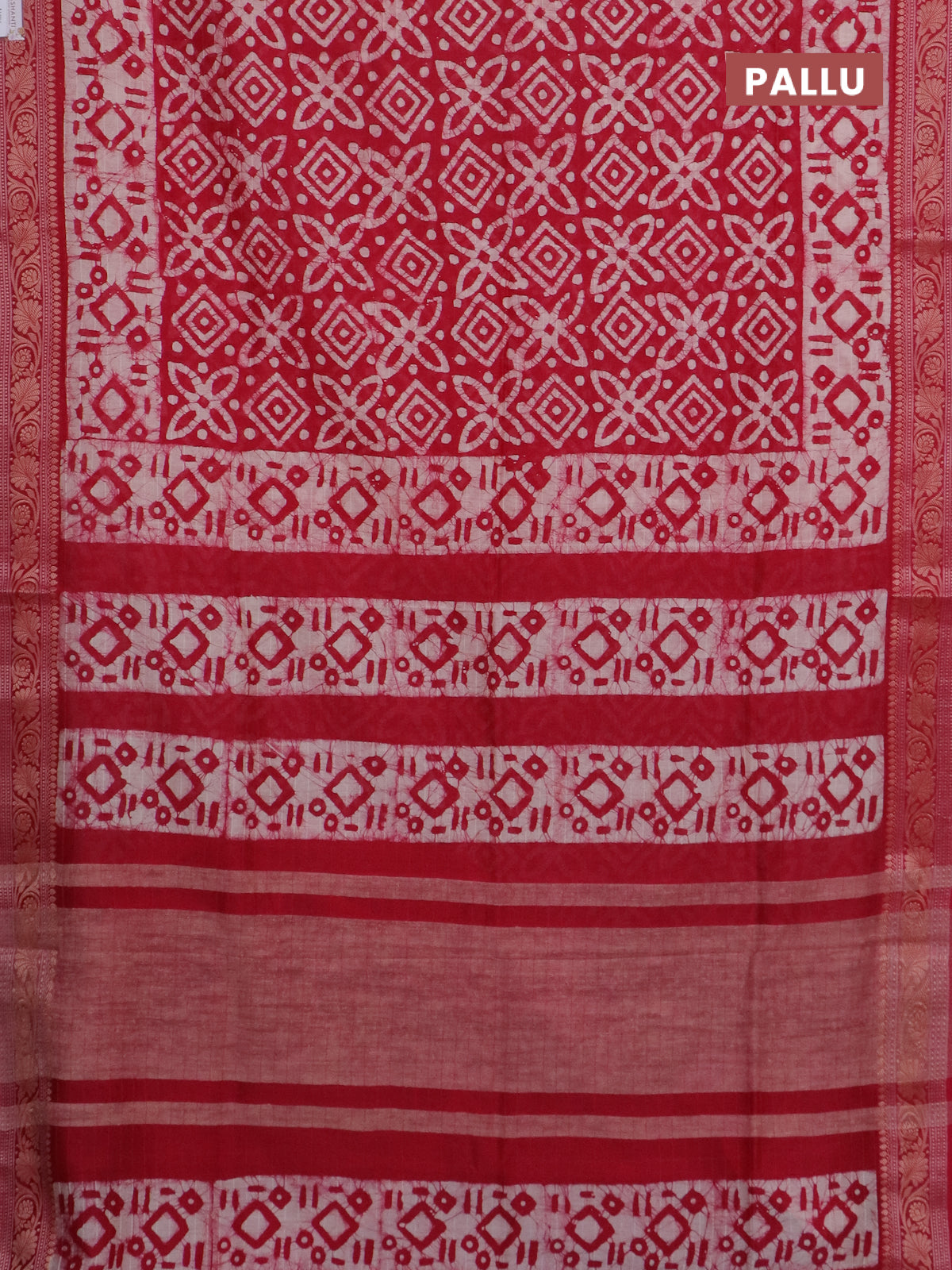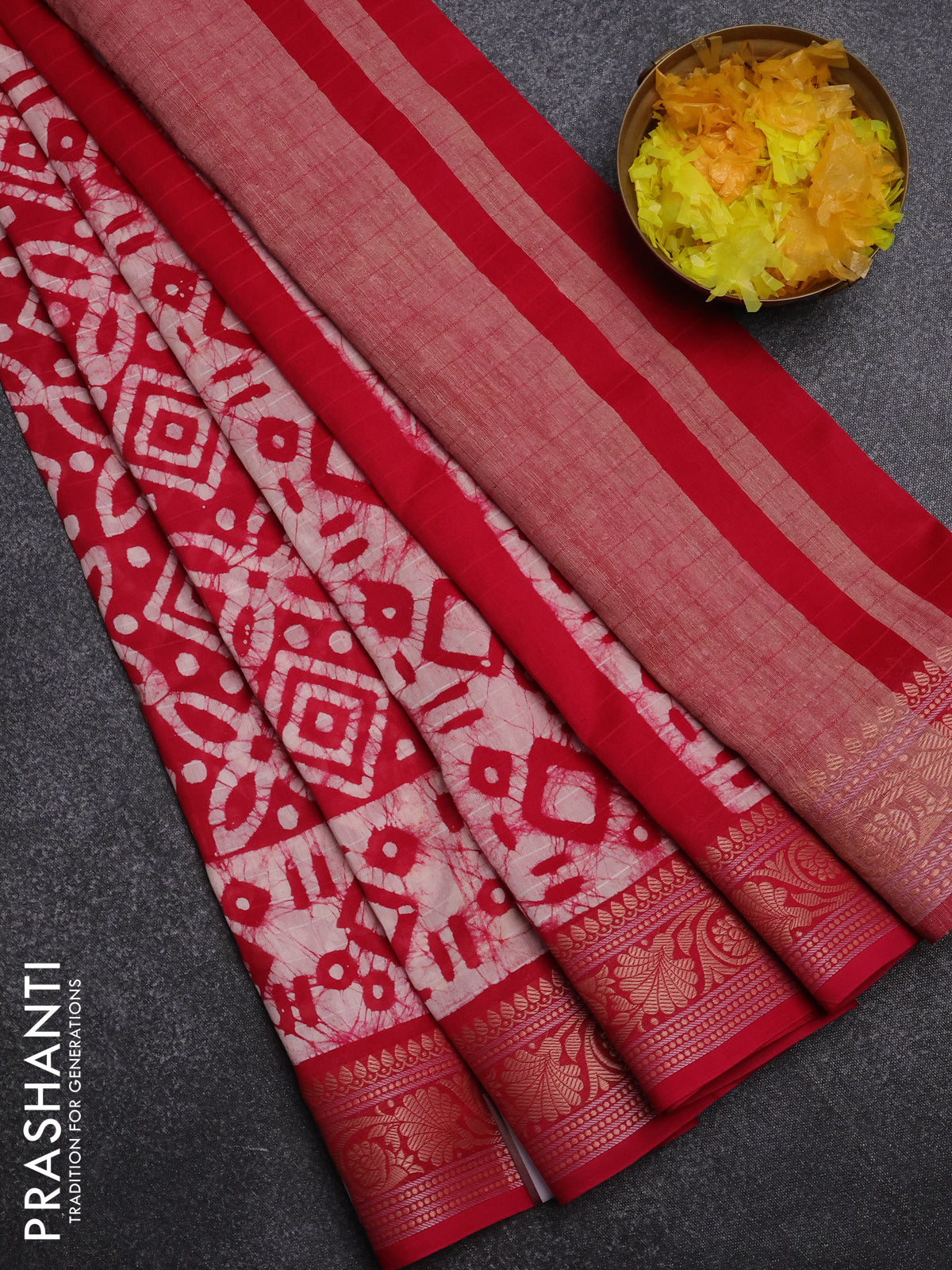 Maheshwari silk cotton saree red with batik prints and zari woven border