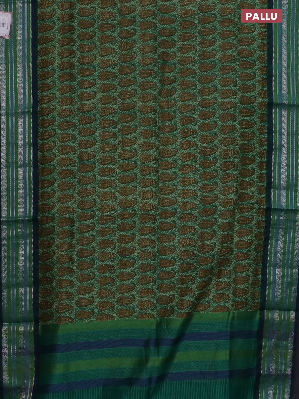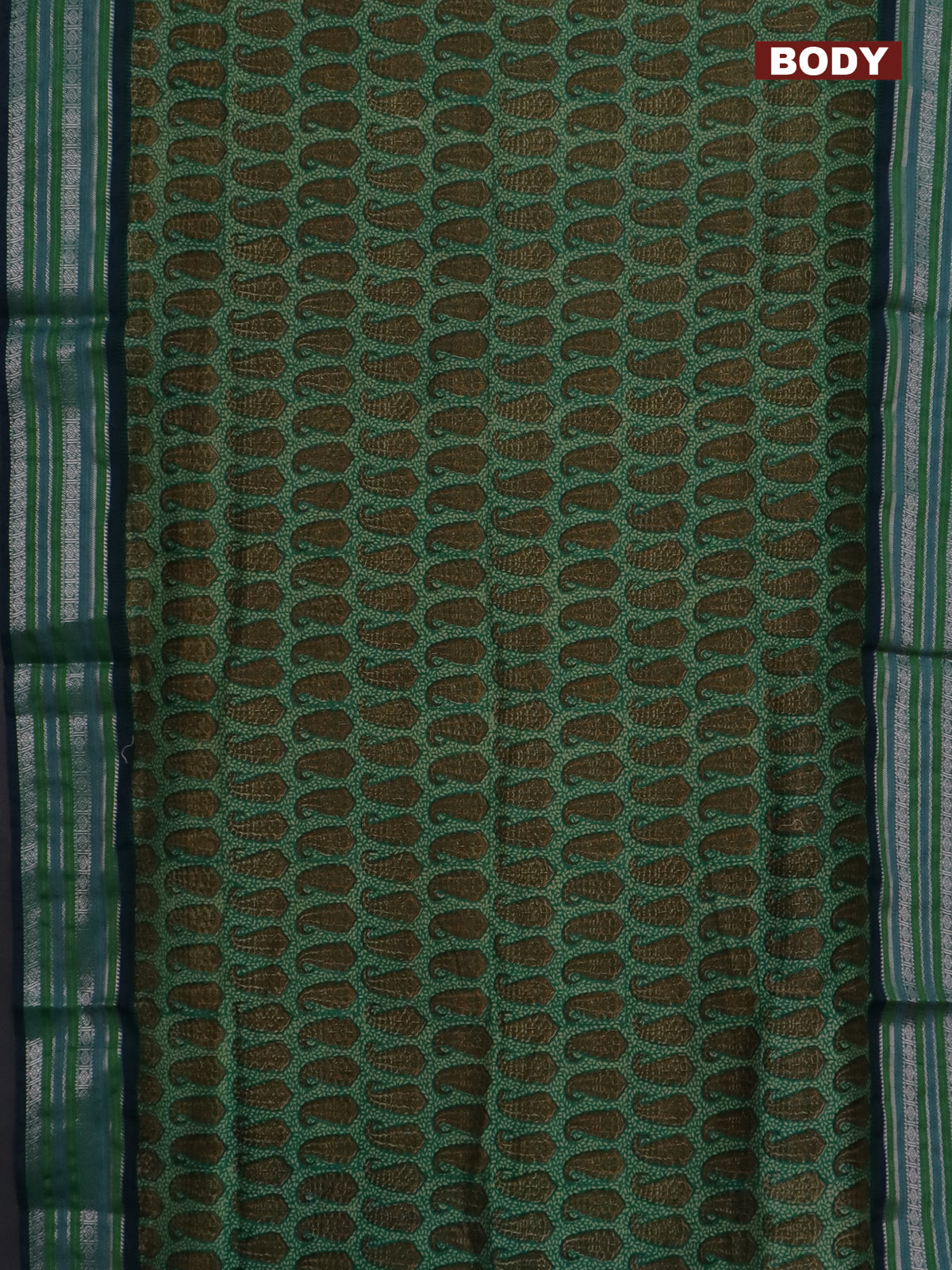 Maheshwari silk cotton saree teal green with allover paisley prints and thread & zari woven border