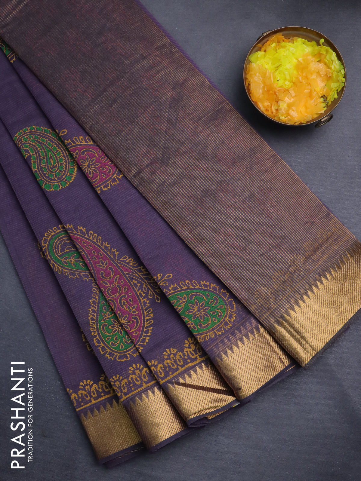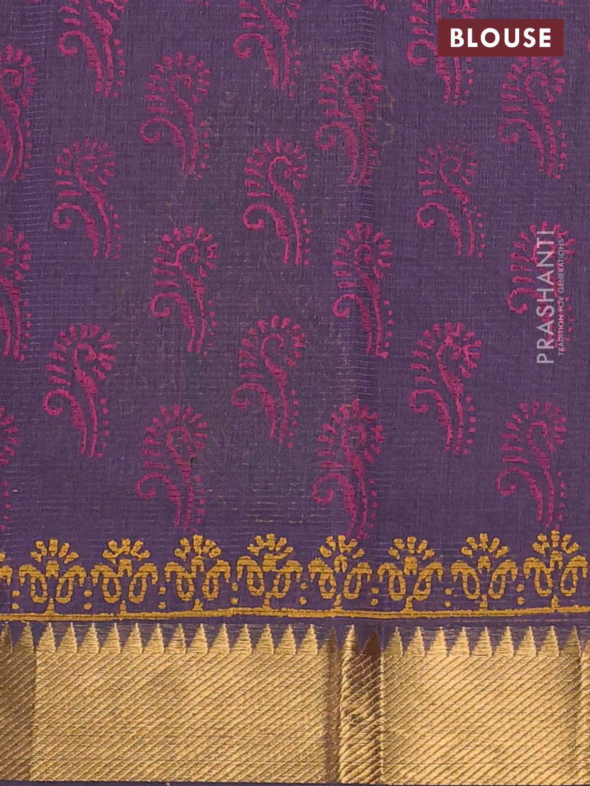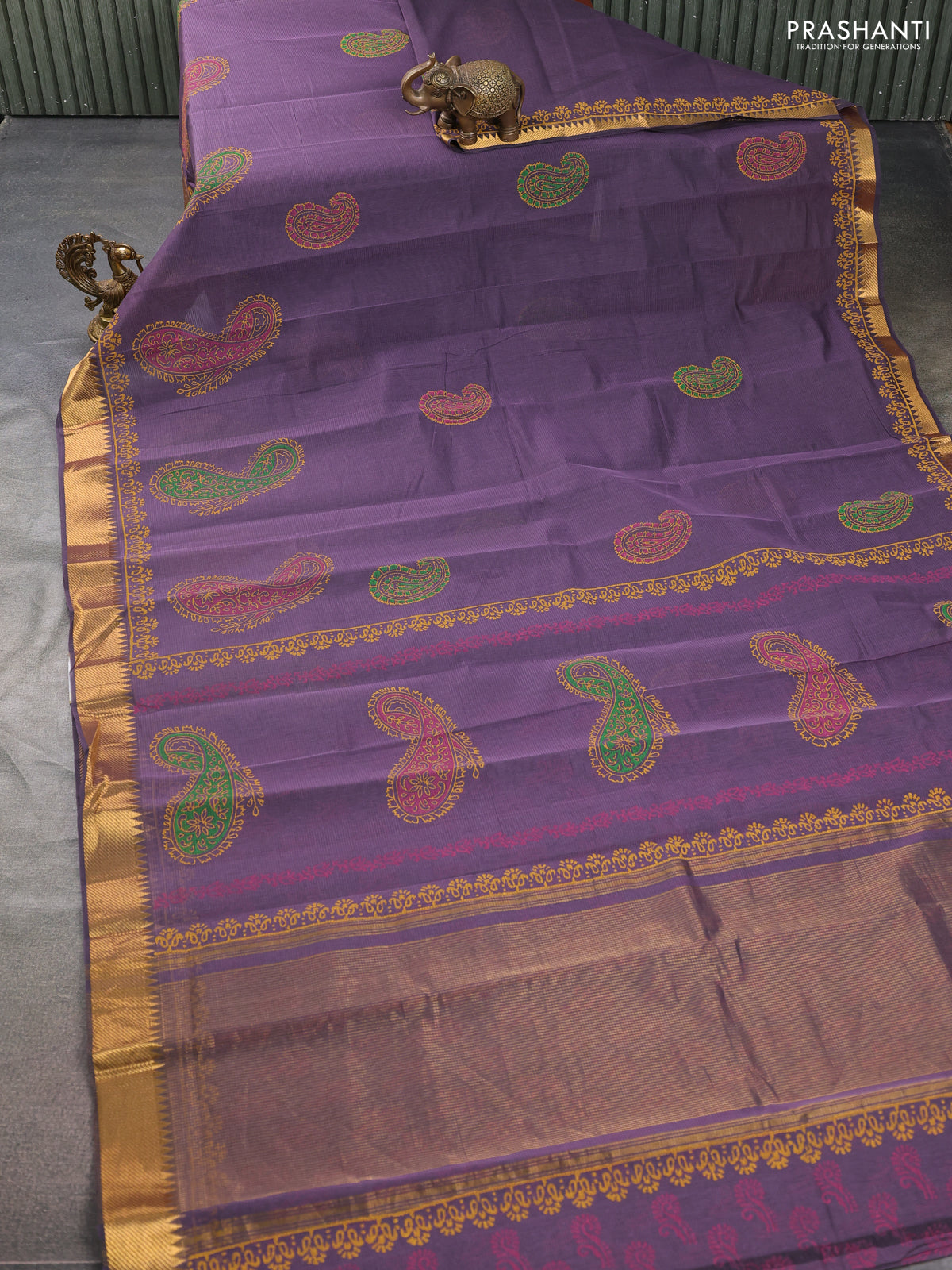 Mangalgiri cotton block printed saree pastel purple with paisley butta prints and zari woven border
