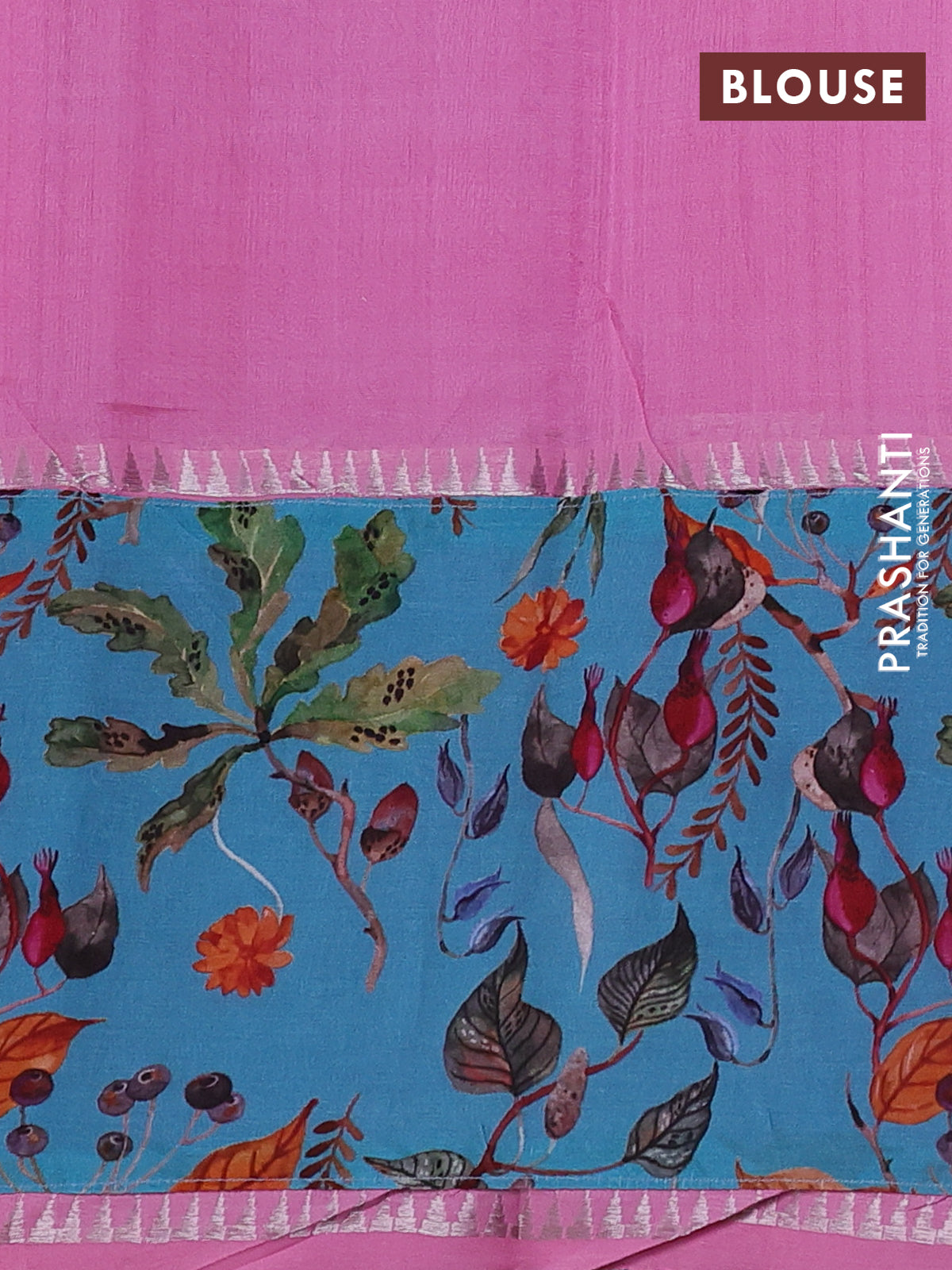 Mangalgiri silk cotton saree light blue and teal blue with plain body and temple design kalamkari printed applique border