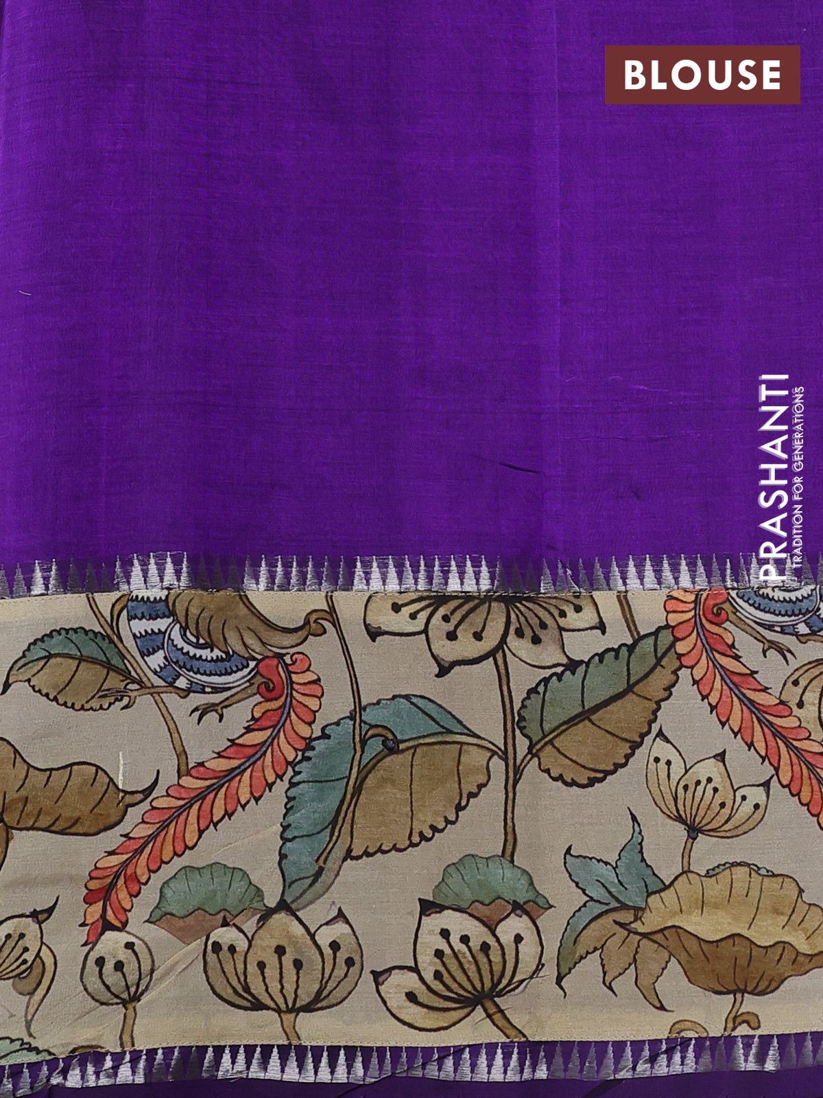 Mangalgiri silk cotton saree violet and beige with plain body and temple design kalamkari printed applique border