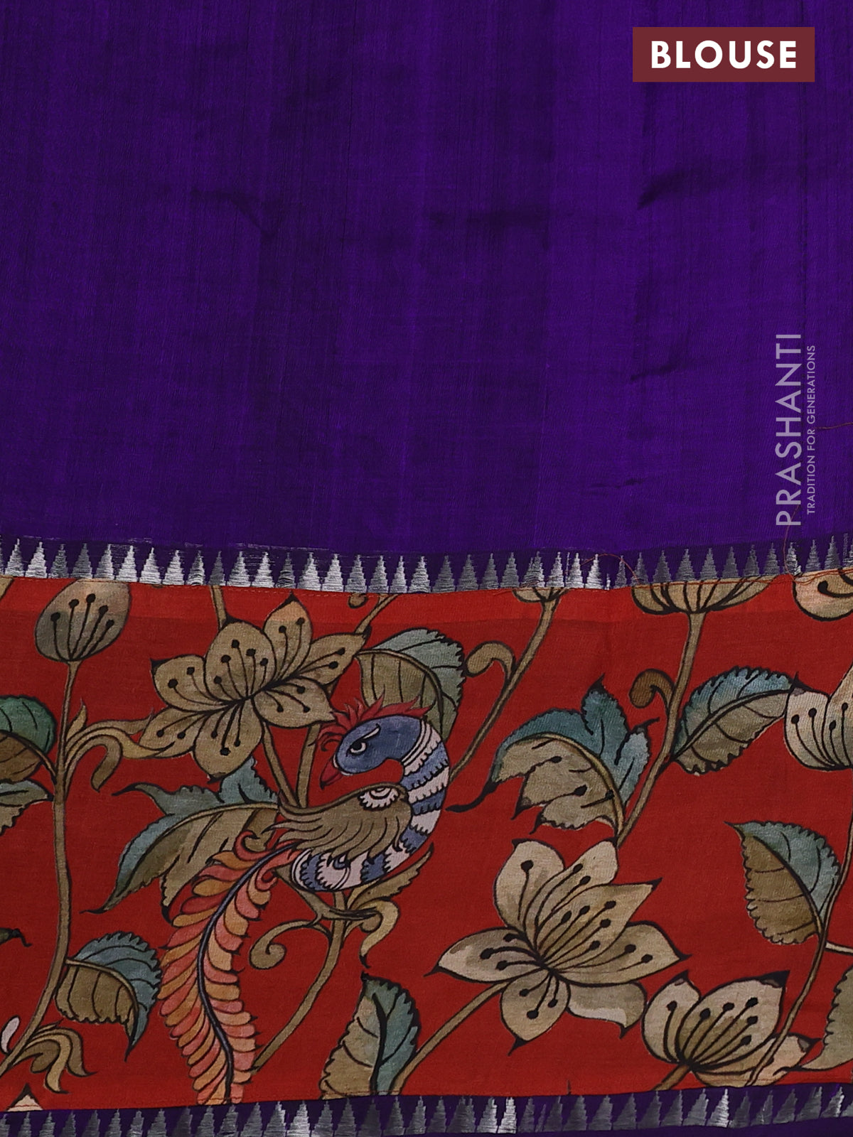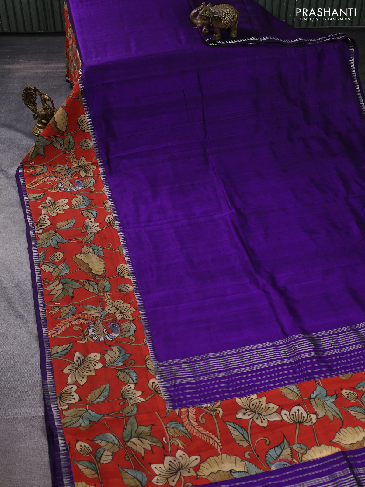 Mangalgiri silk cotton saree violet and rustic orange with plain body and long kalamkari printed applique border