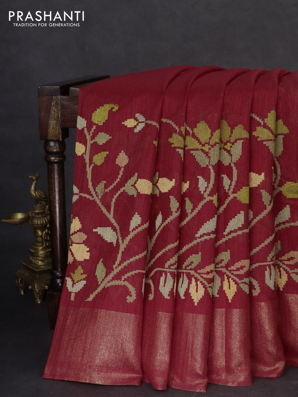 Matka tussar saree red with embroidery buttas and embroidery pallu & zari border